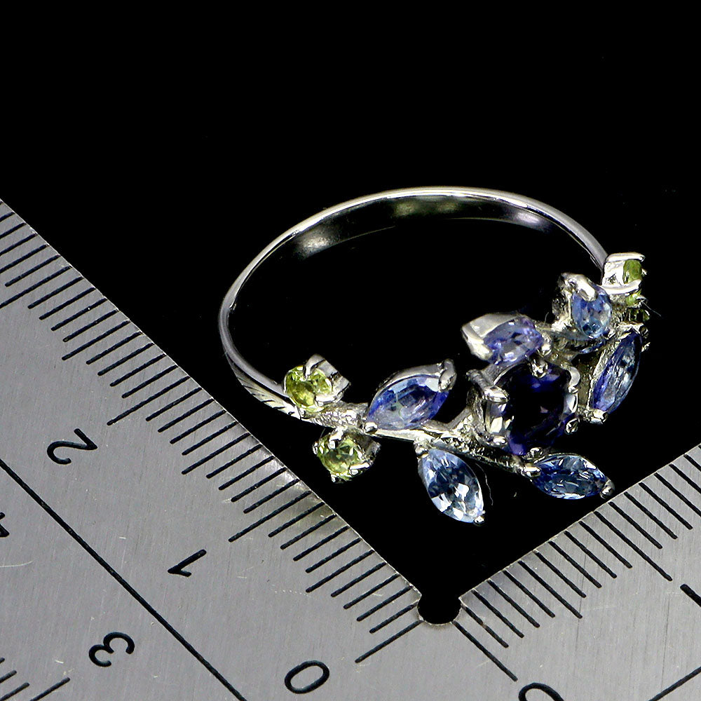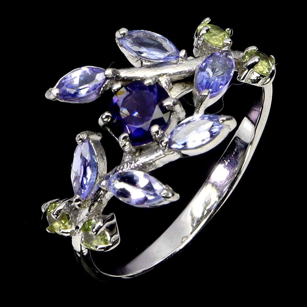 925 Sterling Silver Ring Marquise Tanzanite Iolite Peridot Gemstone Jewelry Sz 8