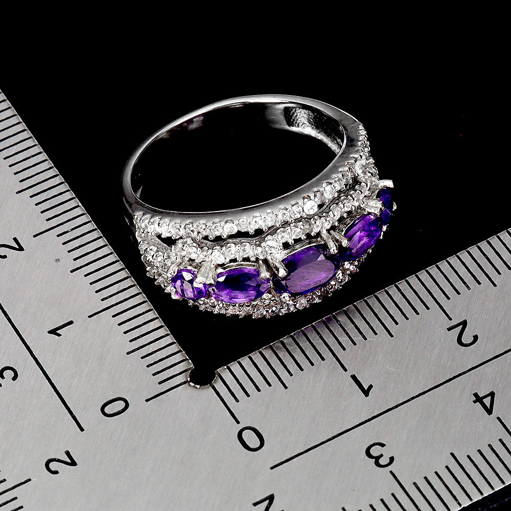925 Sterling Silver Ring Oval Amethyst 6x4mm Natural Gemstone Jewelry Size 7