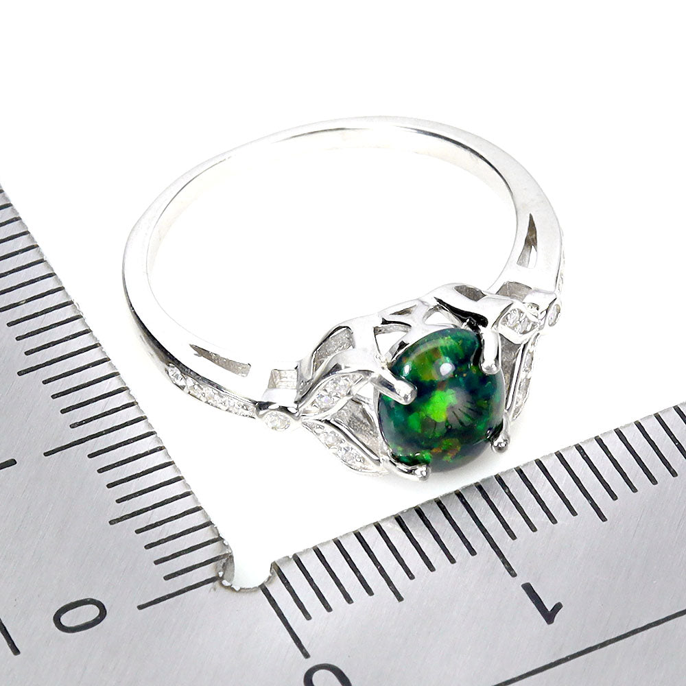 925 Sterling Silver Ring Oval Black Opal 8x6mm Natural Gemstone Jewelry Size 7