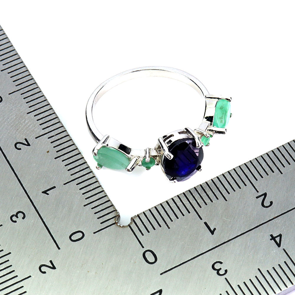 925 Sterling Silver Ring Oval Blue Sapphire 9x7mm Emerald Gemstone Jewelry Sz 8