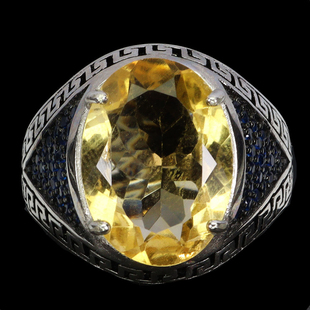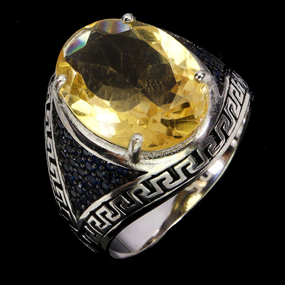 925 Sterling Silver Ring Oval Citrine 16x12mm Natural Gemstone Jewelry Size 9.5