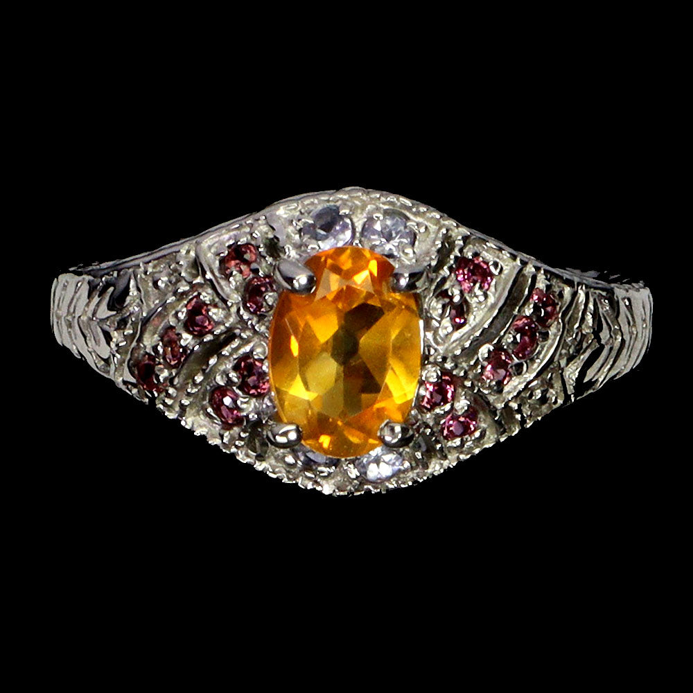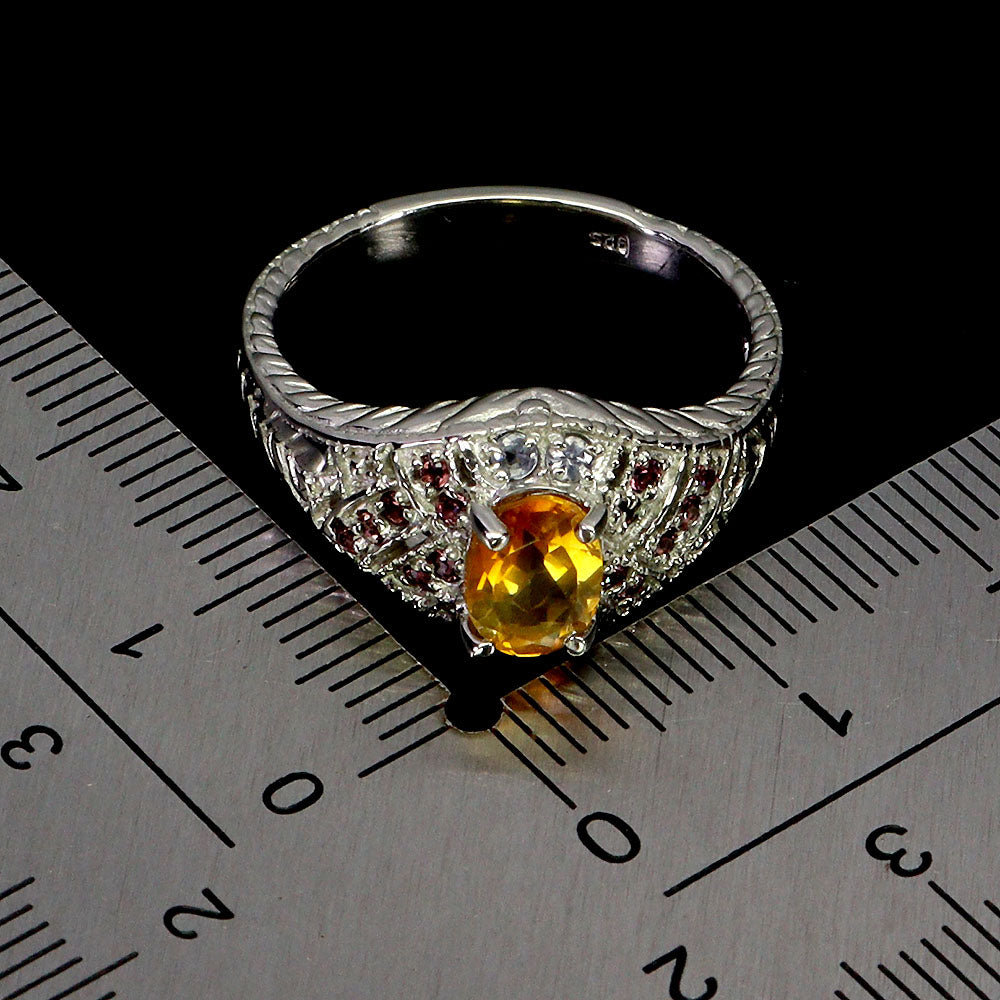 925 Sterling Silver Ring Oval Citrine 7x5mm Tanzanite Gemstone Jewelry Size 7