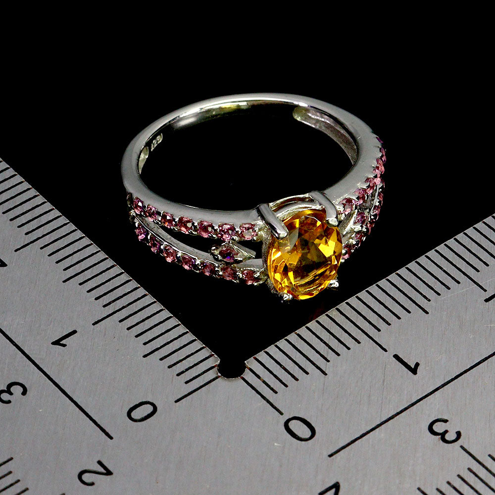 925 Sterling Silver Ring Oval Citrine 8x6mm Rhodolite Garnet Gemstone Jewelry 7