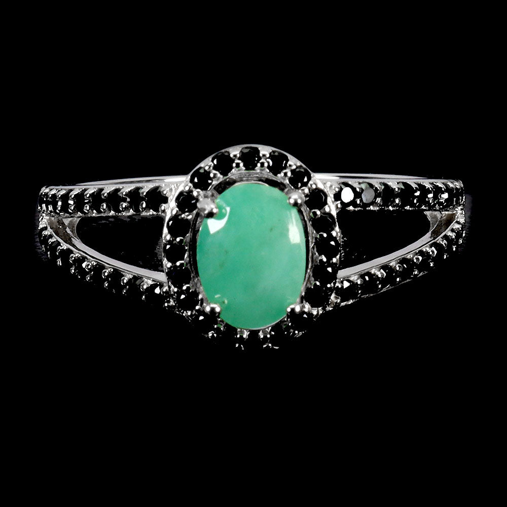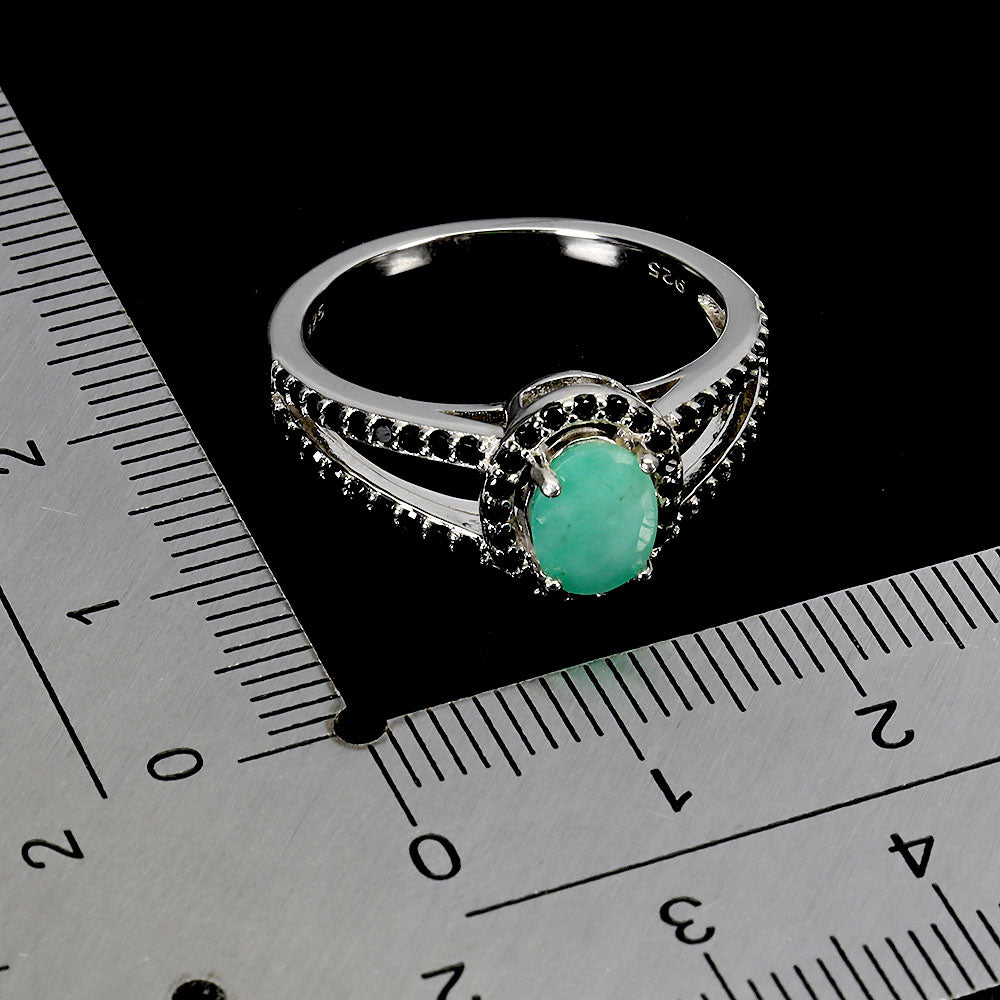 925 Sterling Silver Ring Oval Emerald 7x5mm Spinel Natural Gemstone Jewelry Sz 8