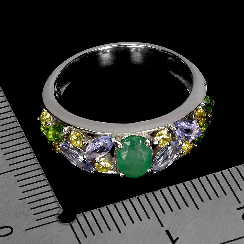 925 Sterling Silver Ring Oval Emerald Chrome Diopside Tanzanite Gemstone Size 7