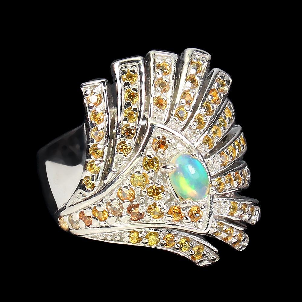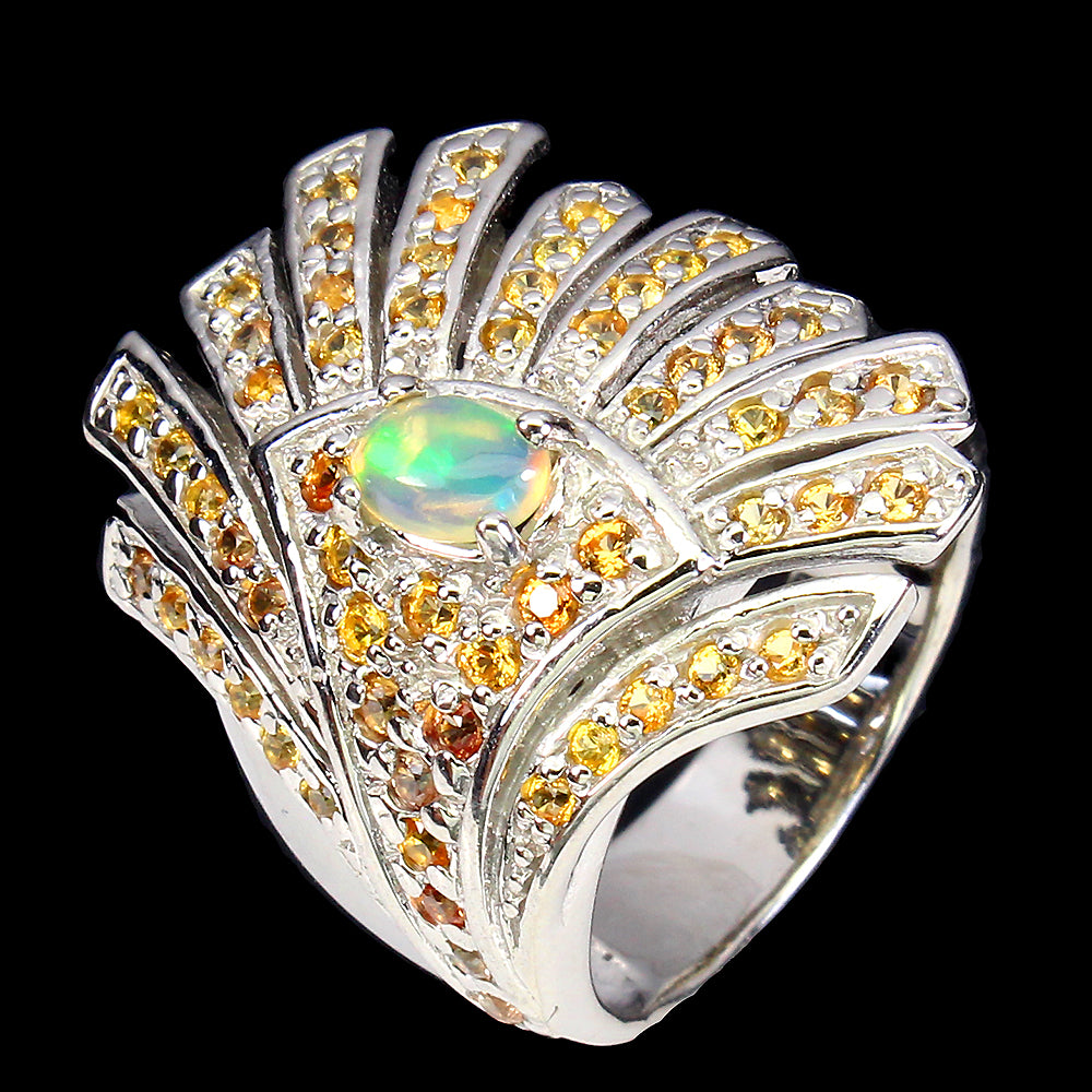 925 Sterling Silver Ring Oval Fire Opal 6x4mm Sapphire Natural Gemstone Jewelry