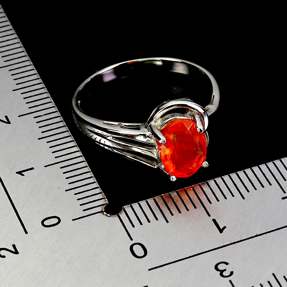 925 Sterling Silver Ring Oval Orange Opal 8x6mm Natural Gemstone Jewelry Size 7