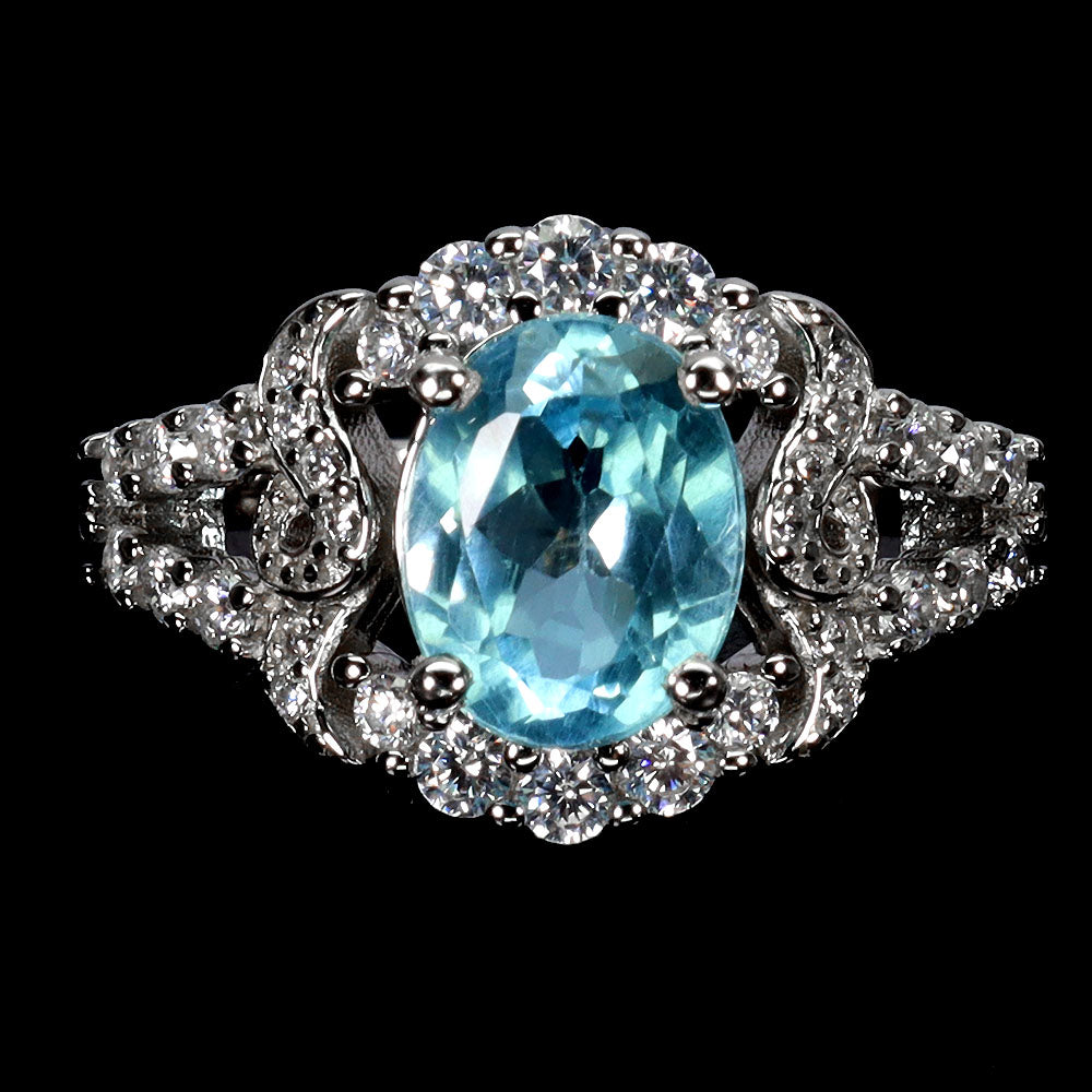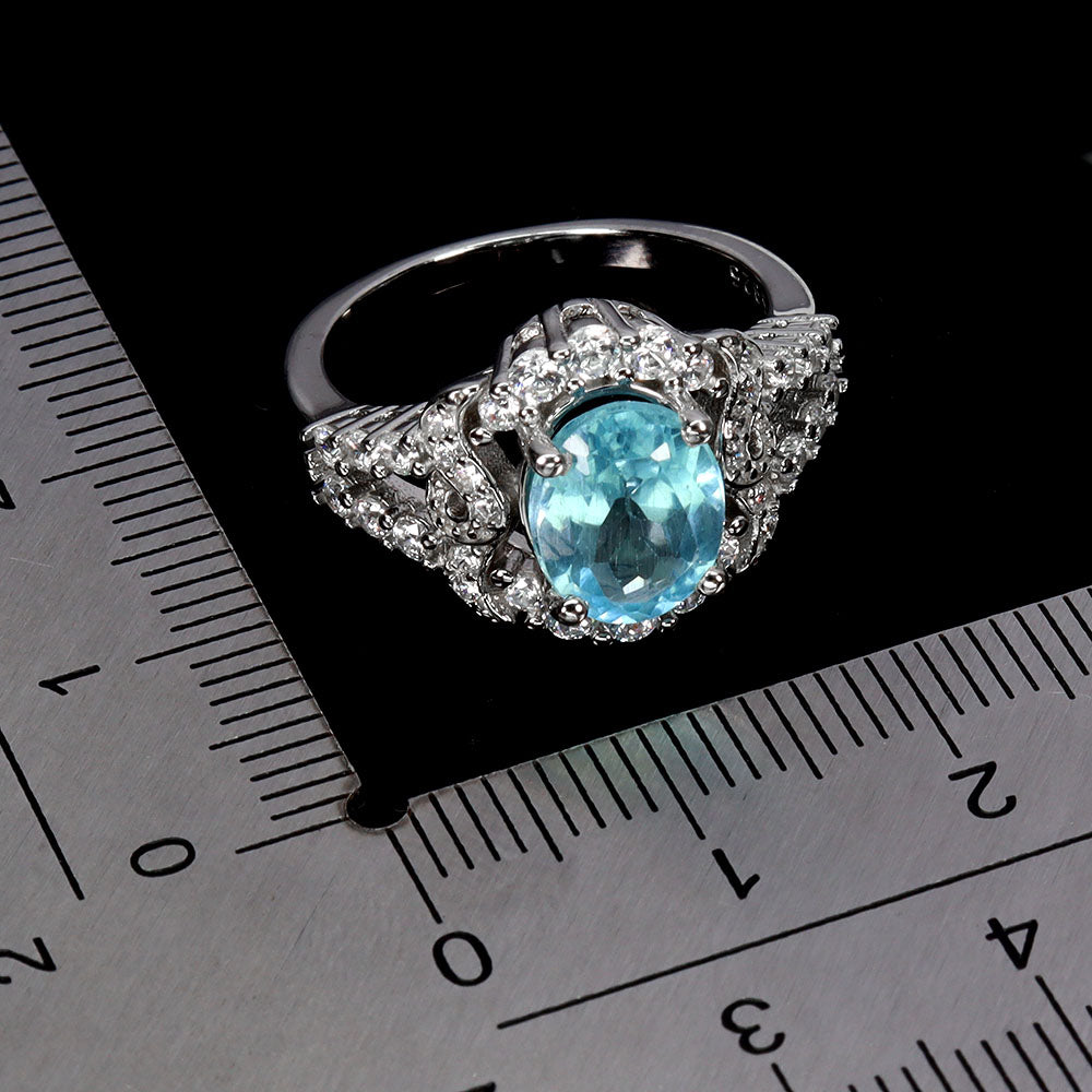 925 Sterling Silver Ring Oval Sky Blue Topaz 9x7mm Gemstone Jewelry Size 6.5