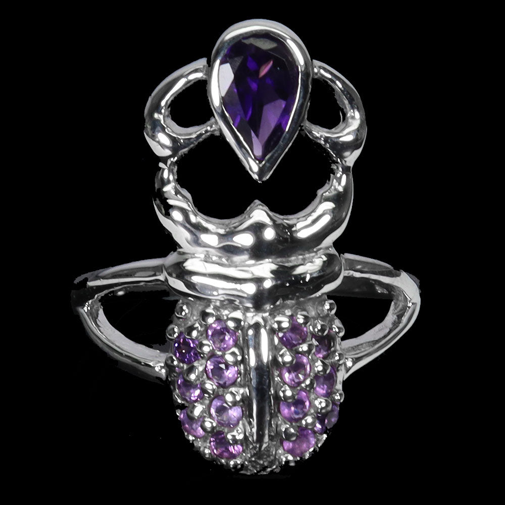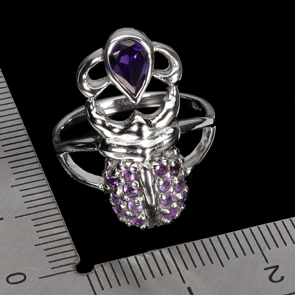 925 Sterling Silver Ring Pear Amethyst 7x5mm Natural Gemstone Jewelry Size 7