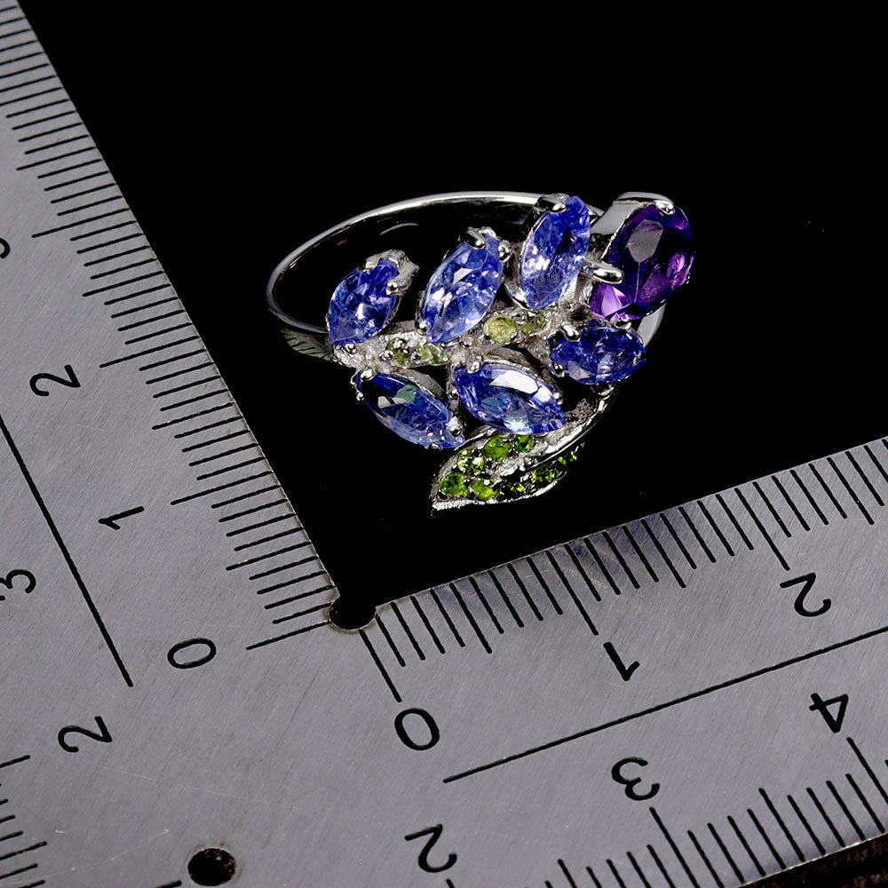 925 Sterling Silver Ring Pear Amethyst 7x5mm Peridot Tanzanite Gemstone Size 8