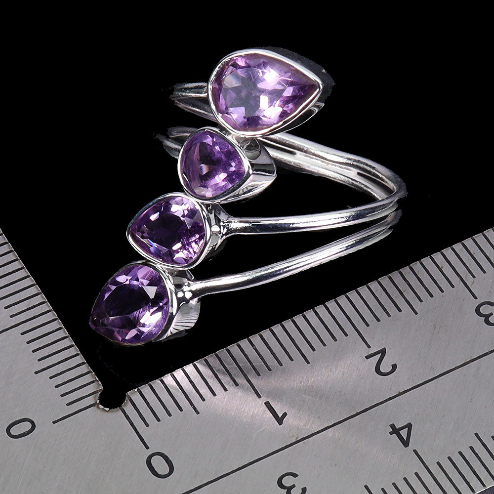925 Sterling Silver Ring Pear Amethyst 9x6mm Natural Gemstone Jewelry Size 9