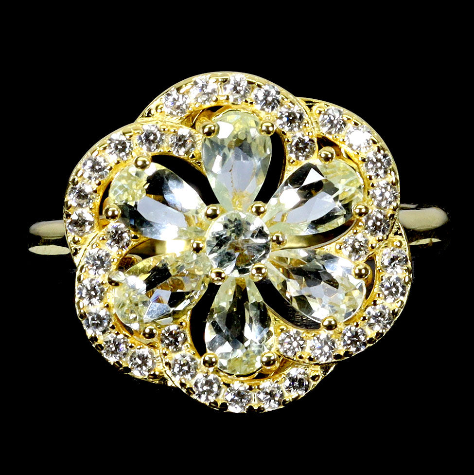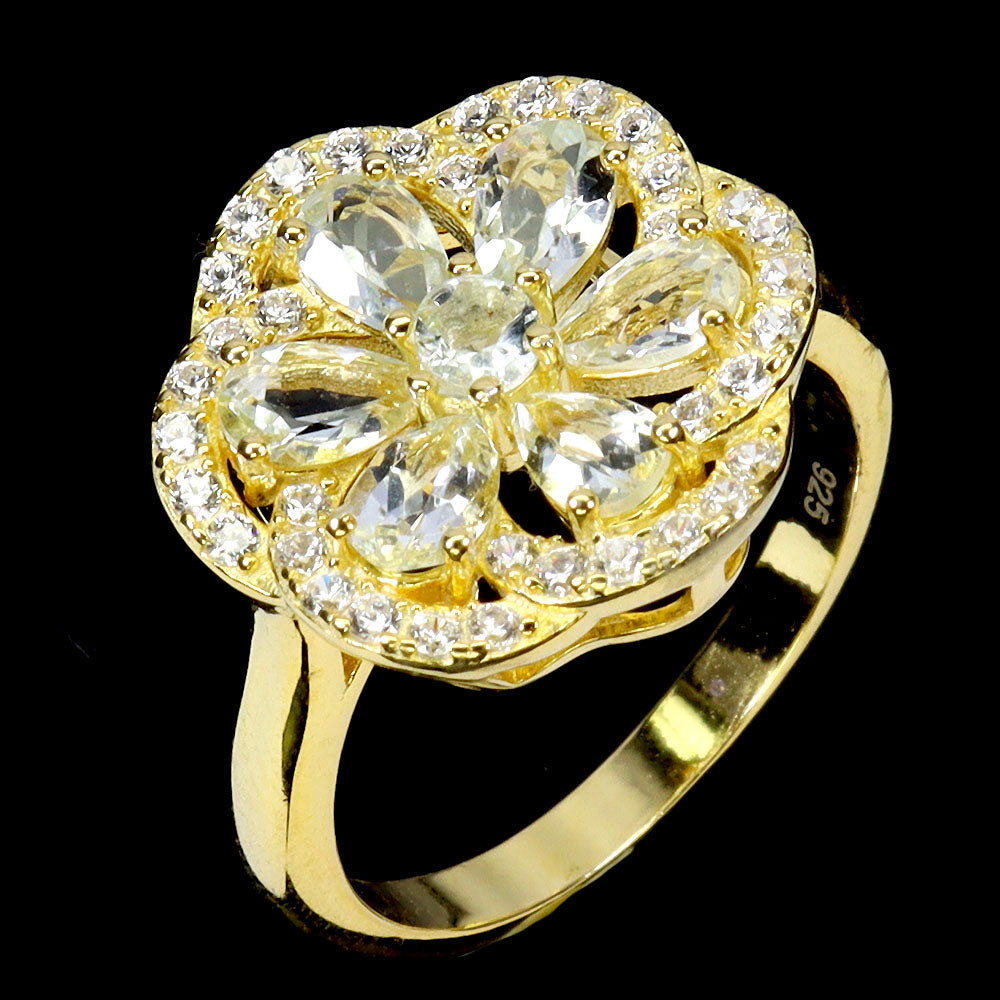 925 Sterling Silver Ring Pear Aquamarine 5x3mm Flower Gemstone Jewelry Size 6