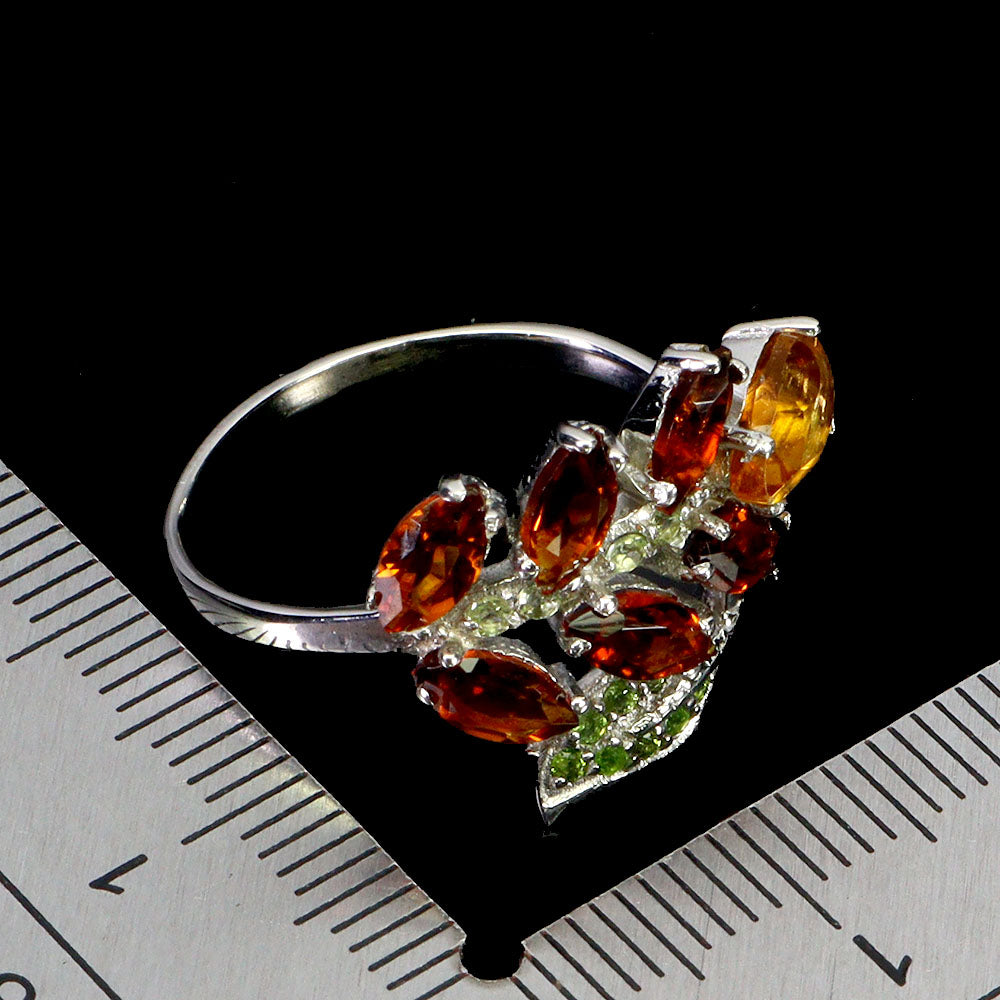 925 Sterling Silver Ring Pear Citrine 7x5mm Chrome Diopside Gemstone Jewelry 8