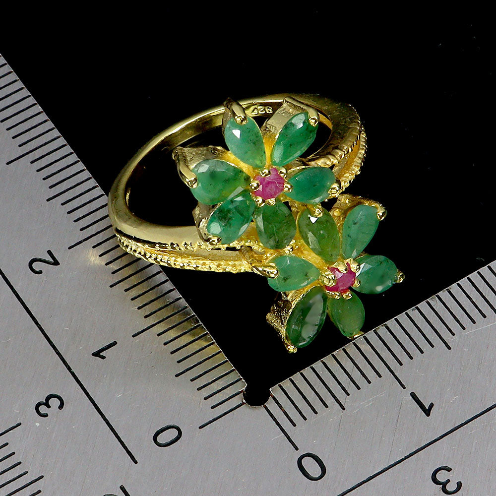 925 Sterling Silver Ring Pear Emerald 5x3mm Ruby Flower Gemstone Jewelry 7.5