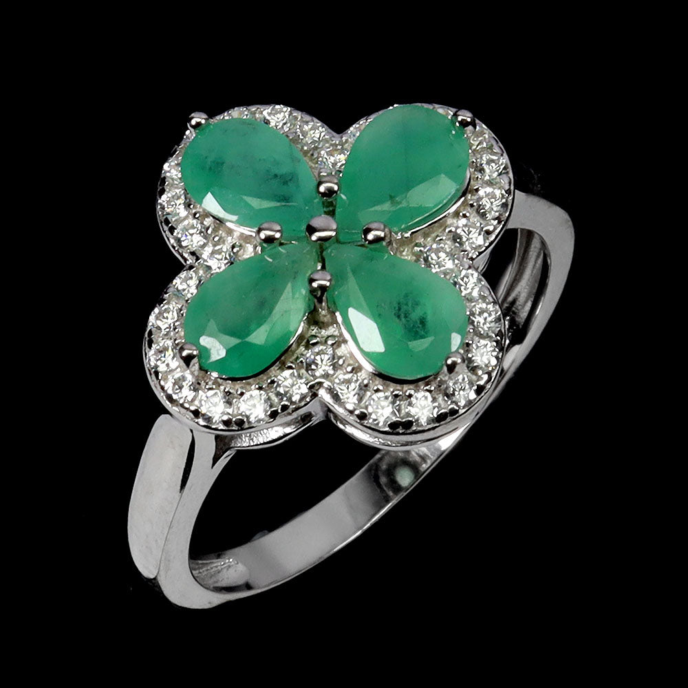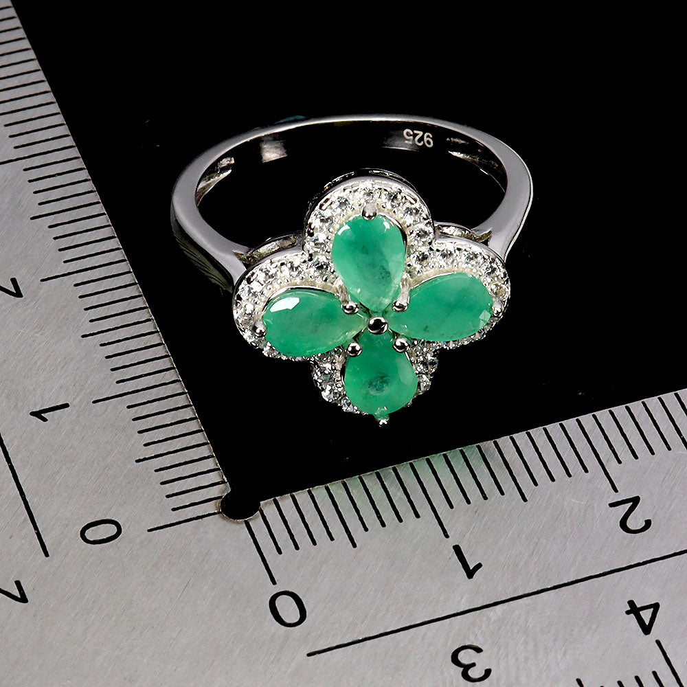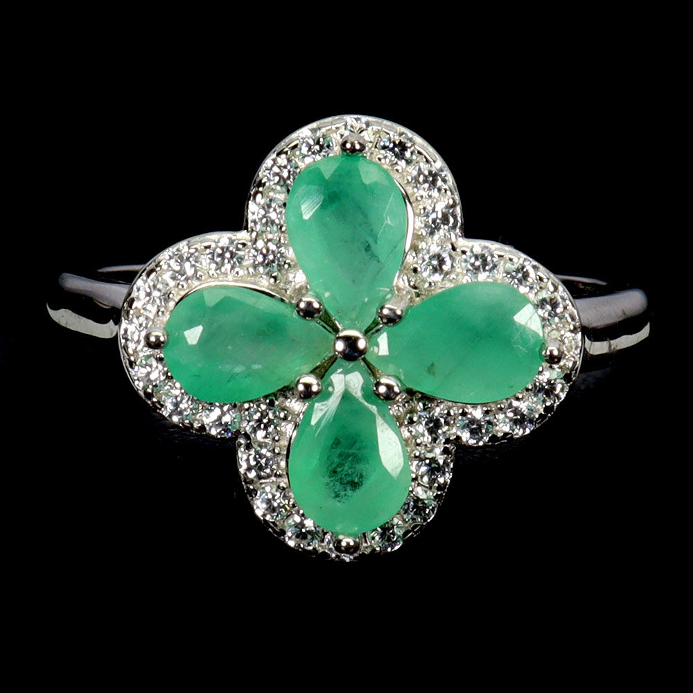 925 Sterling Silver Ring Pear Emerald 6x4mm Flower Natural Gemstone Jewelry Sz 8