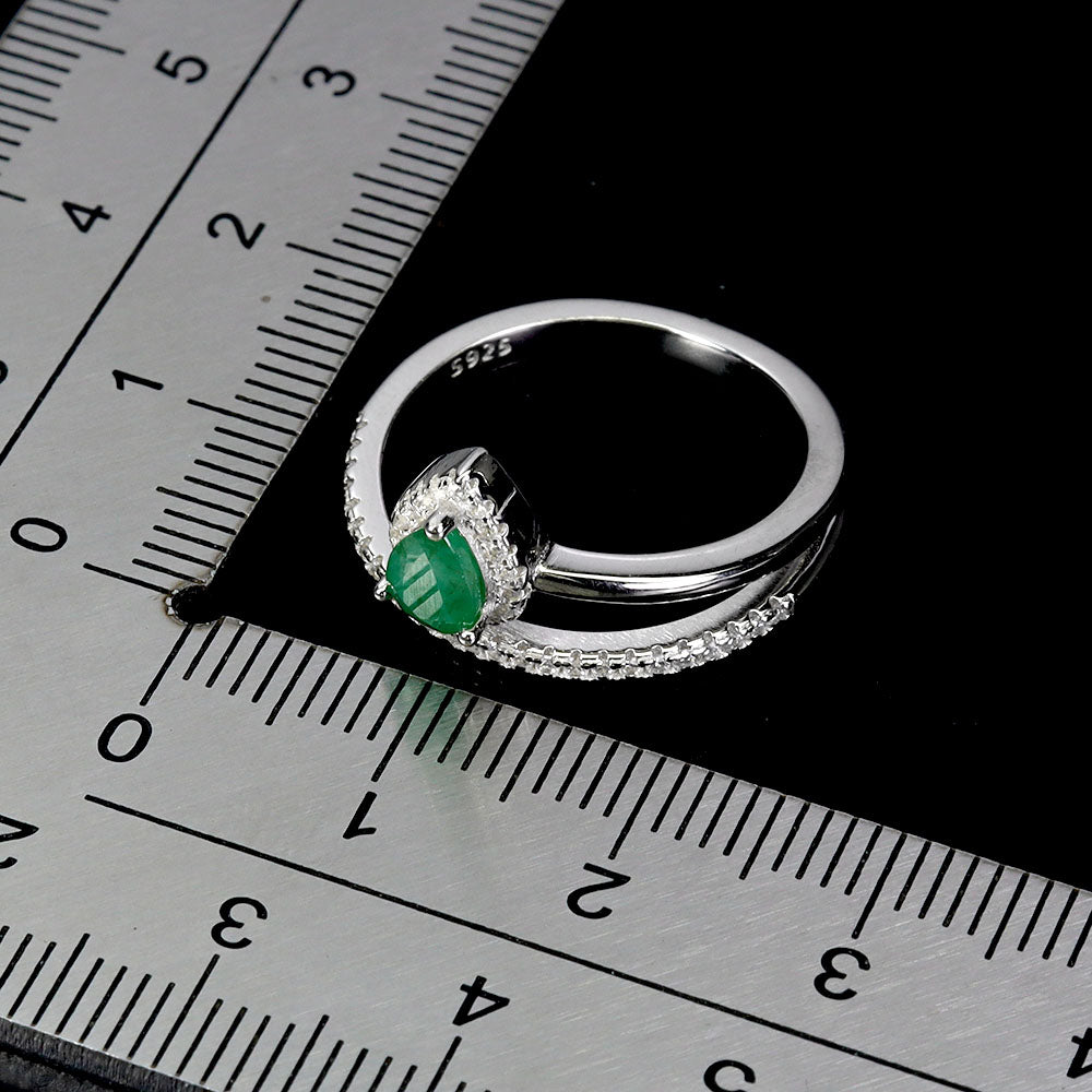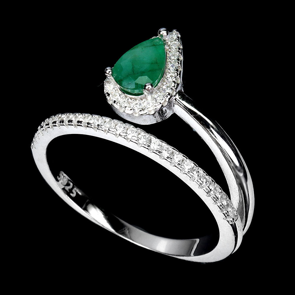 925 Sterling Silver Ring Pear Emerald 6x4mm Natural Gemstone Jewelry Size 7
