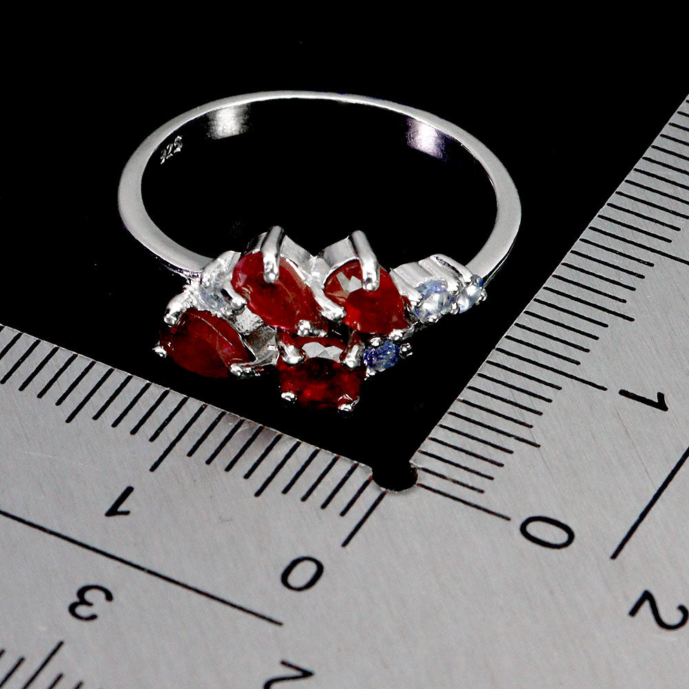 925 Sterling Silver Ring Pear Ruby 5x3mm Tanzanite Gemstone Jewelry Size 8