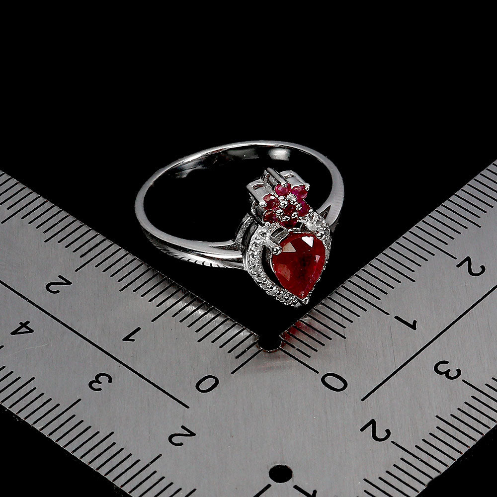 925 Sterling Silver Ring Pear Ruby 7x5mm White Topaz Gemstone Jewelry Size 8