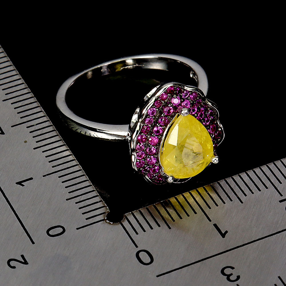925 Sterling Silver Ring Pear Yellow Sapphire 9x6mm Sapphire Gemstone Jewelry 7