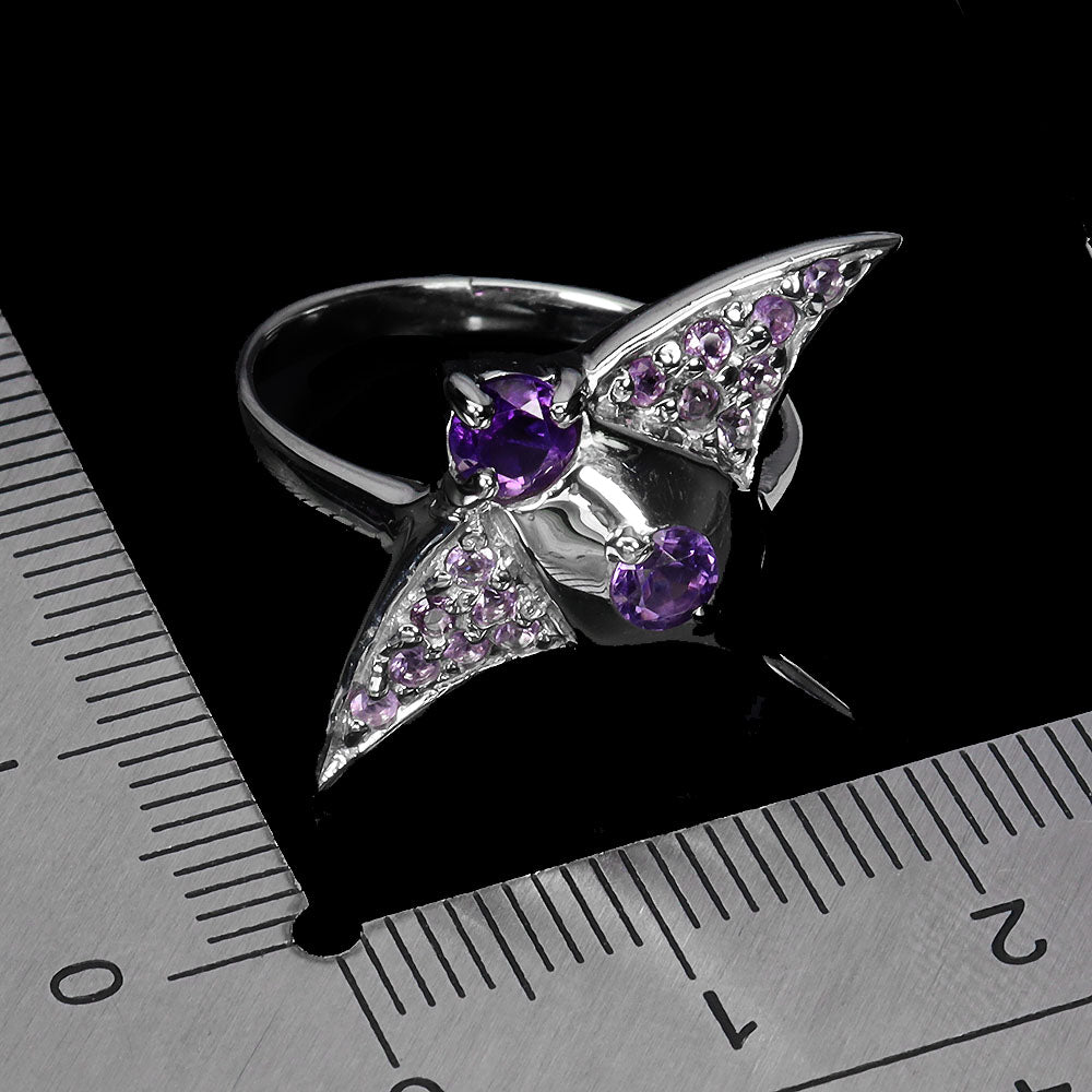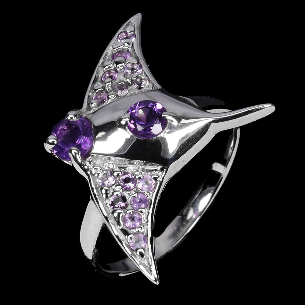 925 Sterling Silver Ring Round Amethyst 4mm Natural Gemstone Jewelry Size 7
