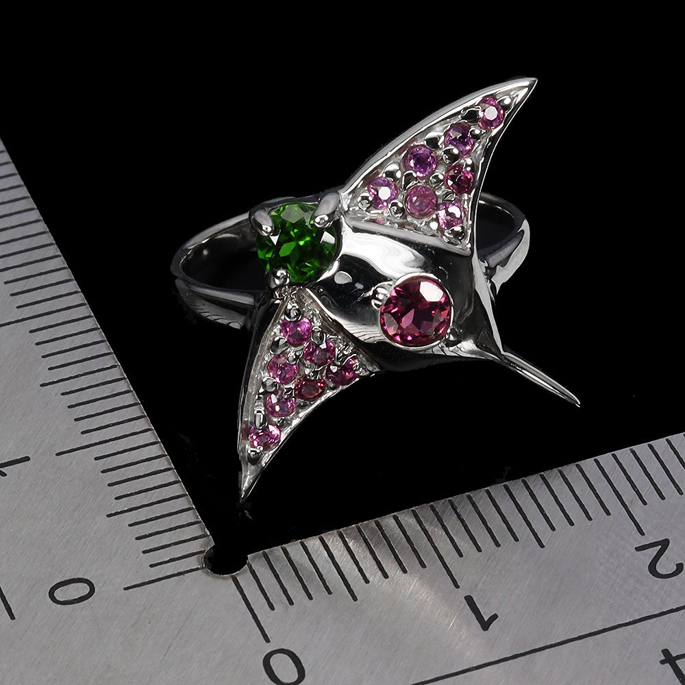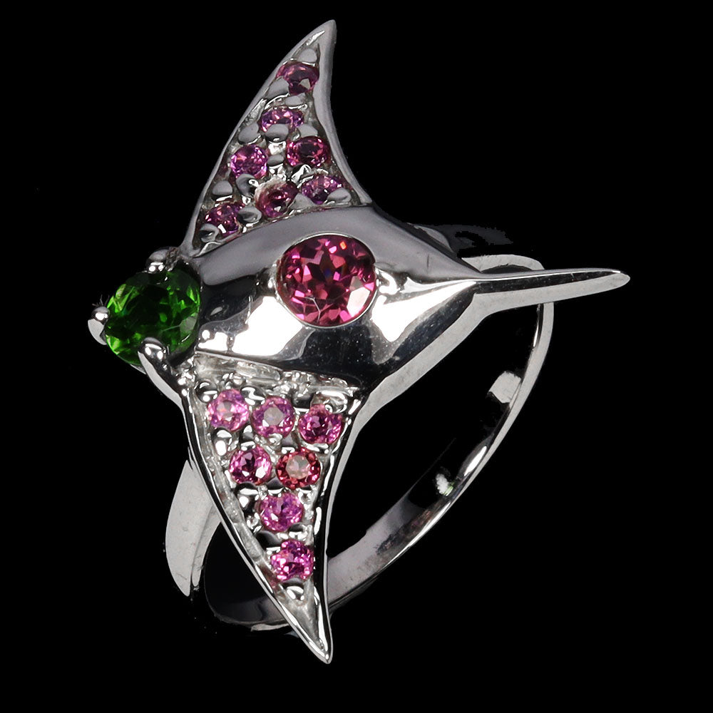 925 Sterling Silver Ring Round Chrome Diopside 4mm Rhodolite Gemstone Jewelry 7