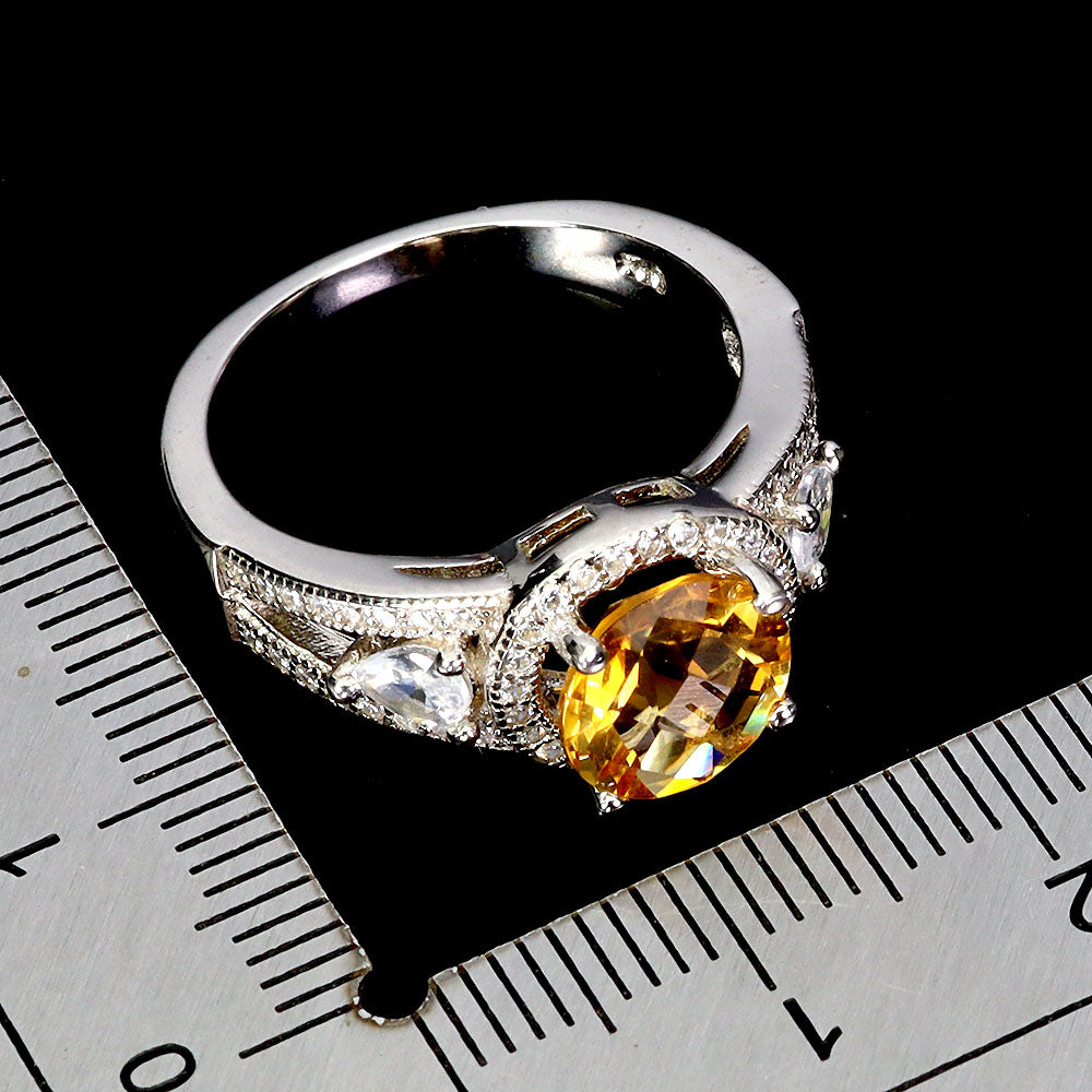 925 Sterling Silver Ring Round Citrine 8mm Natural Gemstone Jewelry Size 8