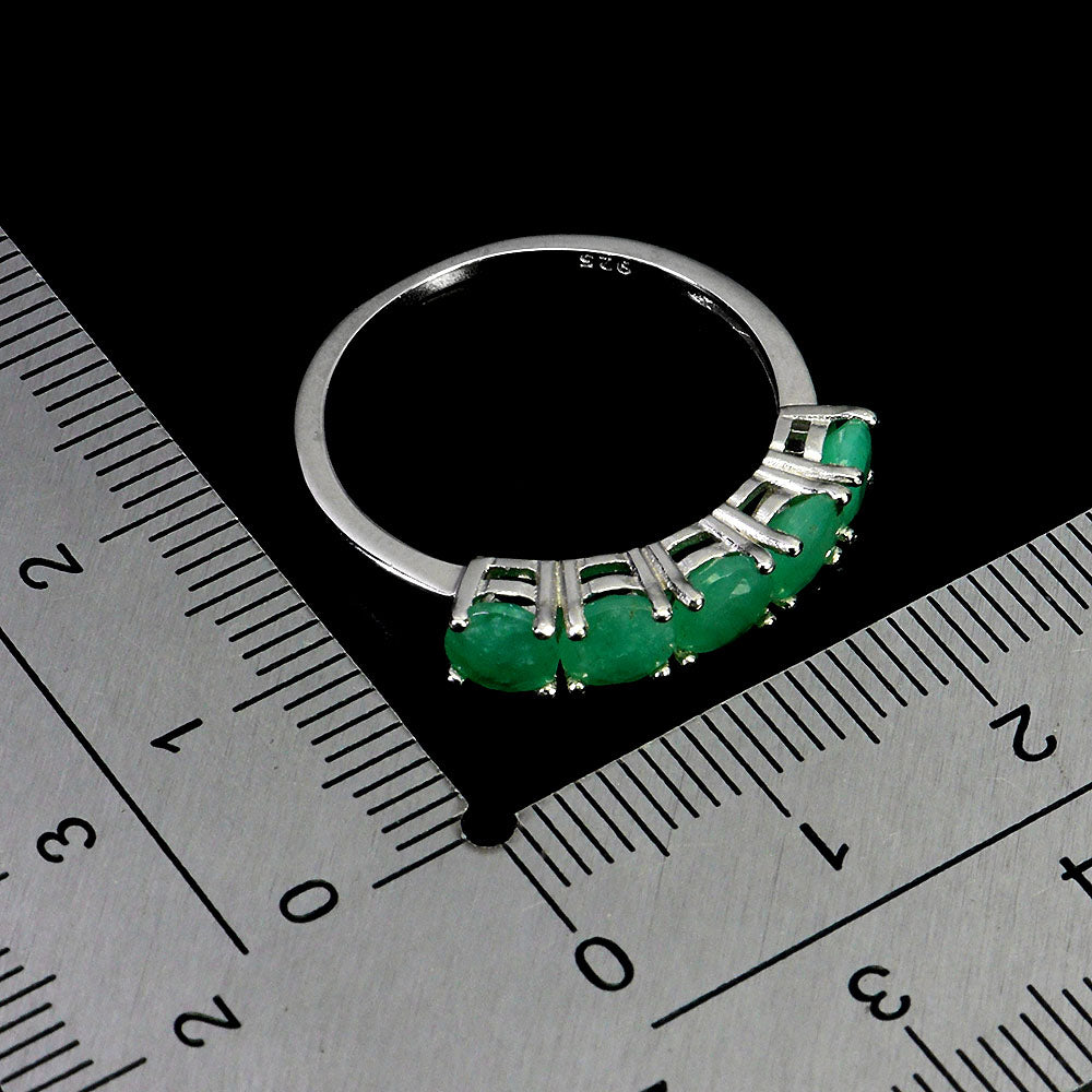 925 Sterling Silver Ring Round Emerald 4mm Natural Gemstone Jewelry Size 7