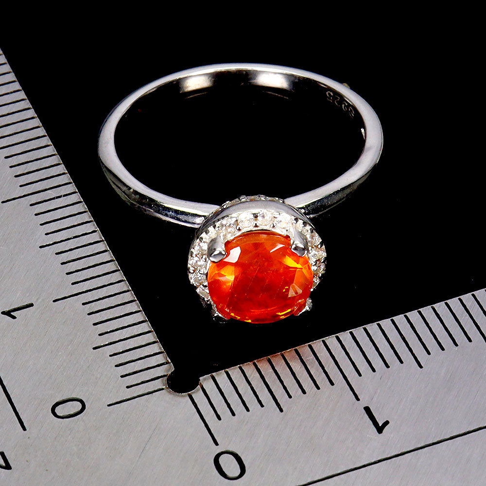 925 Sterling Silver Ring Round Orange Opal 12mm Natural Gemstone Jewelry Size 8