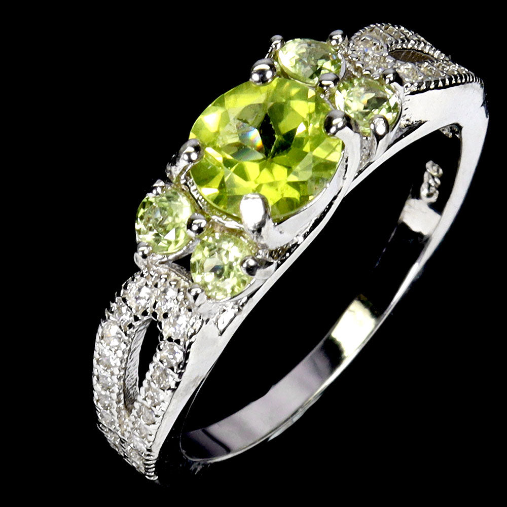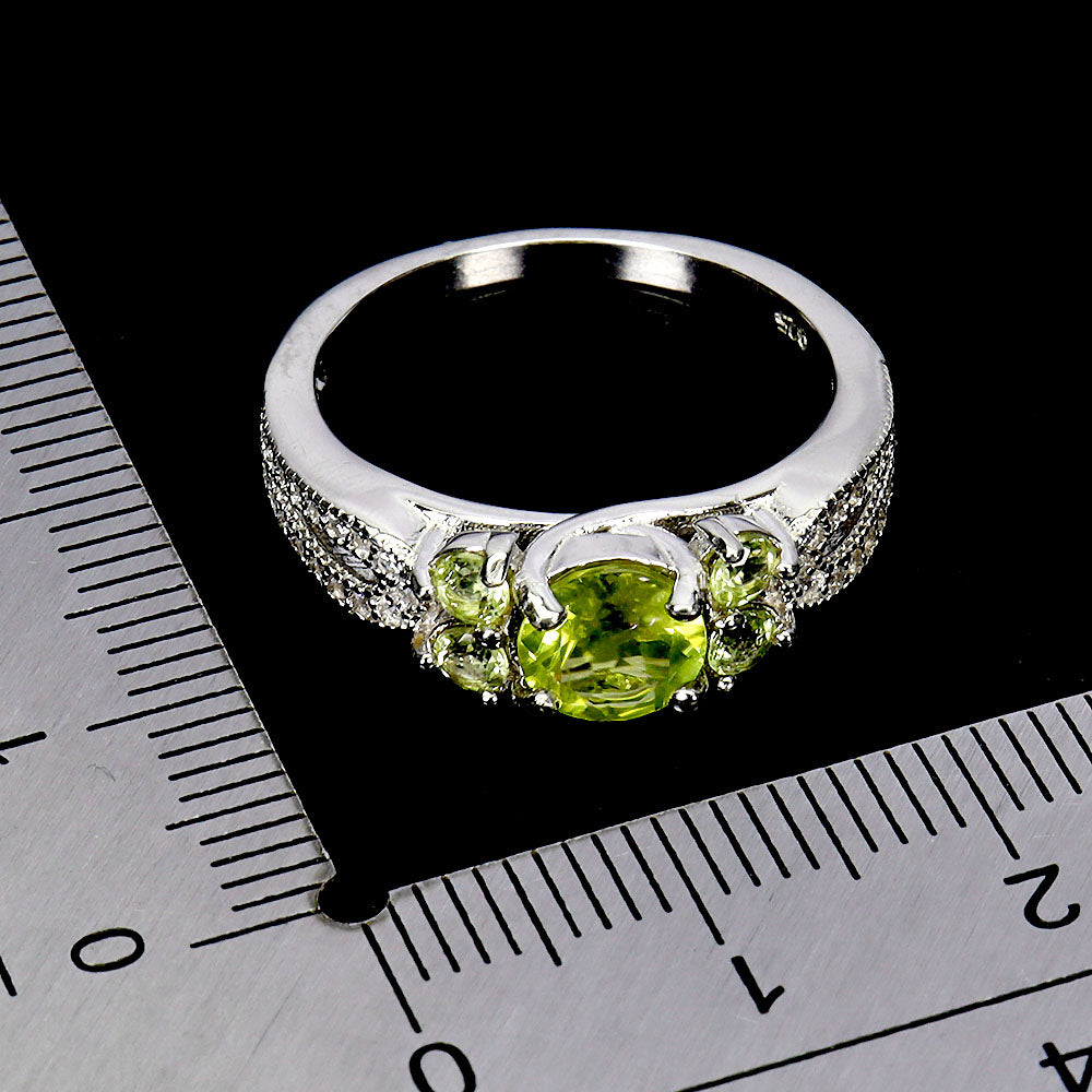 925 Sterling Silver Ring Round Peridot 6mm Natural Gemstone Jewelry Size 7