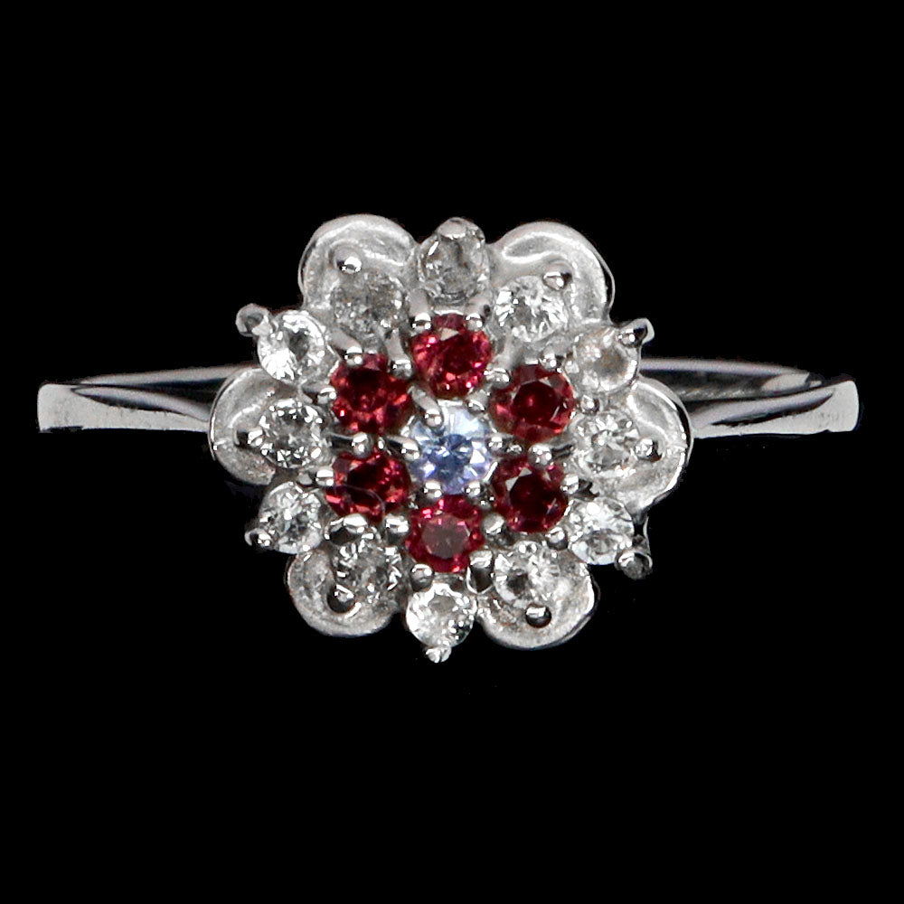 925 Sterling Silver Ring Round Peridot Rhodolite Tanzanite Gemstone Jewelry Sz 8
