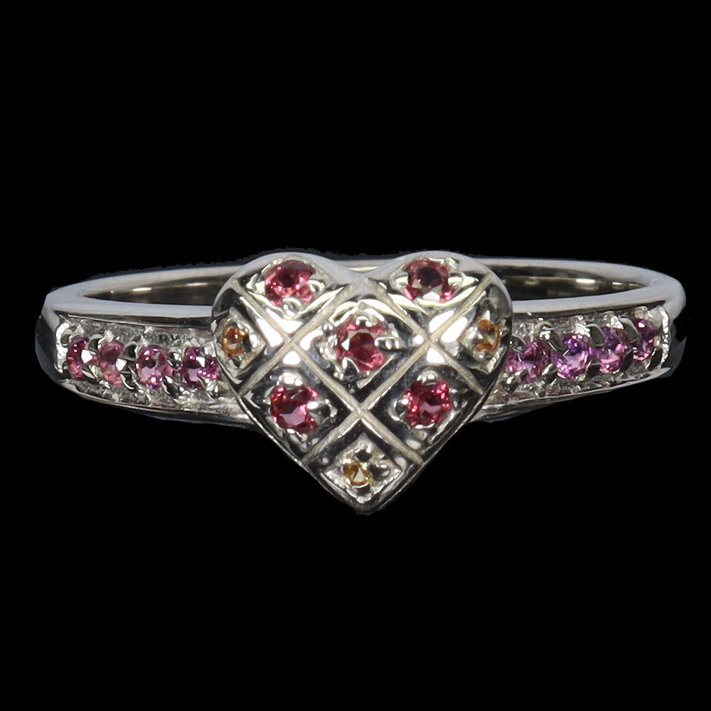 925 Sterling Silver Ring Round Rhodolite Sapphire Heart Gemstone Jewelry Size 7