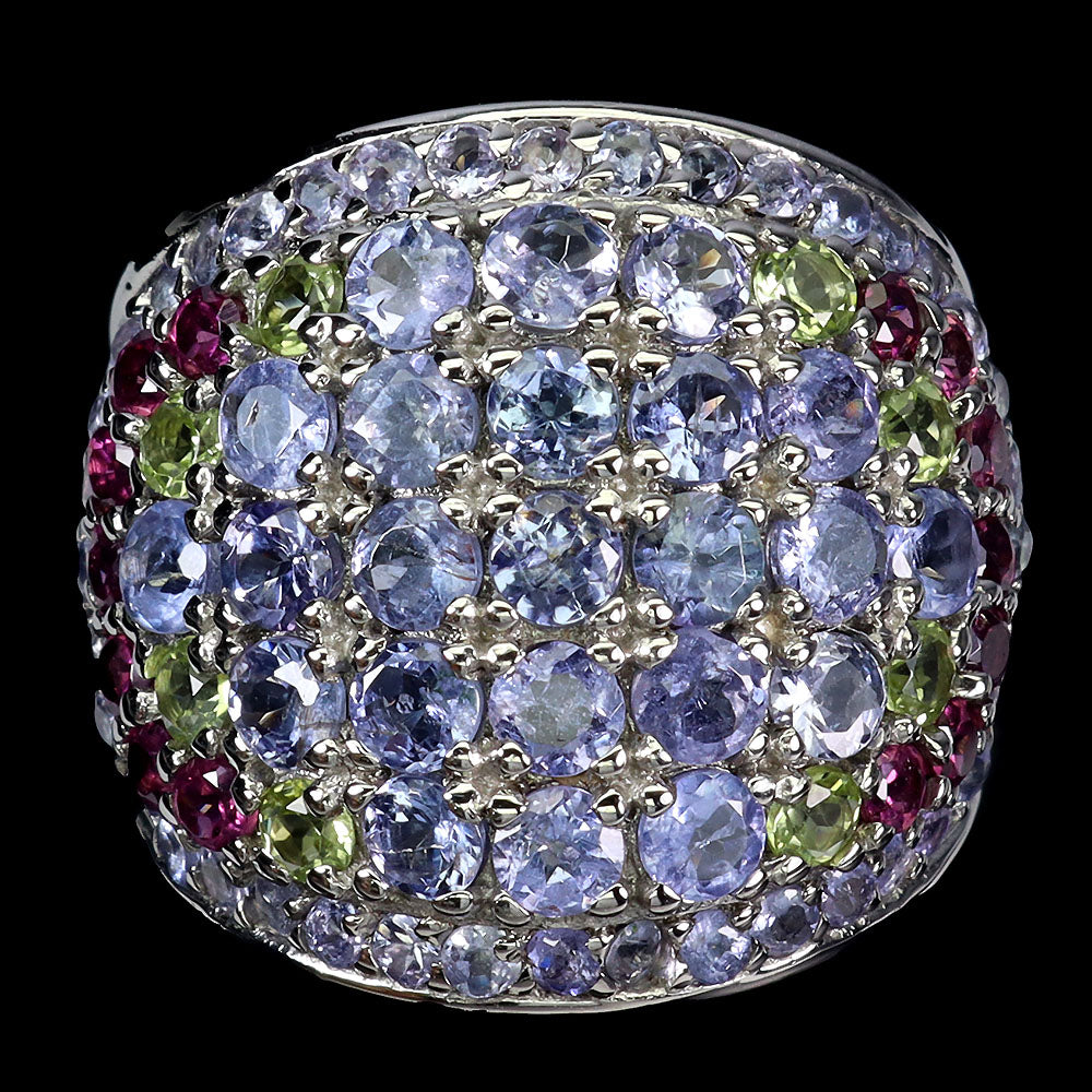 925 Sterling Silver Ring Round Tanzanite Peridot Rhodolite Gemstone Jewelry 8.5