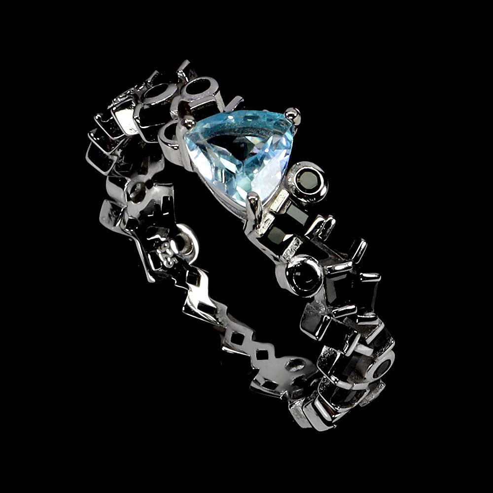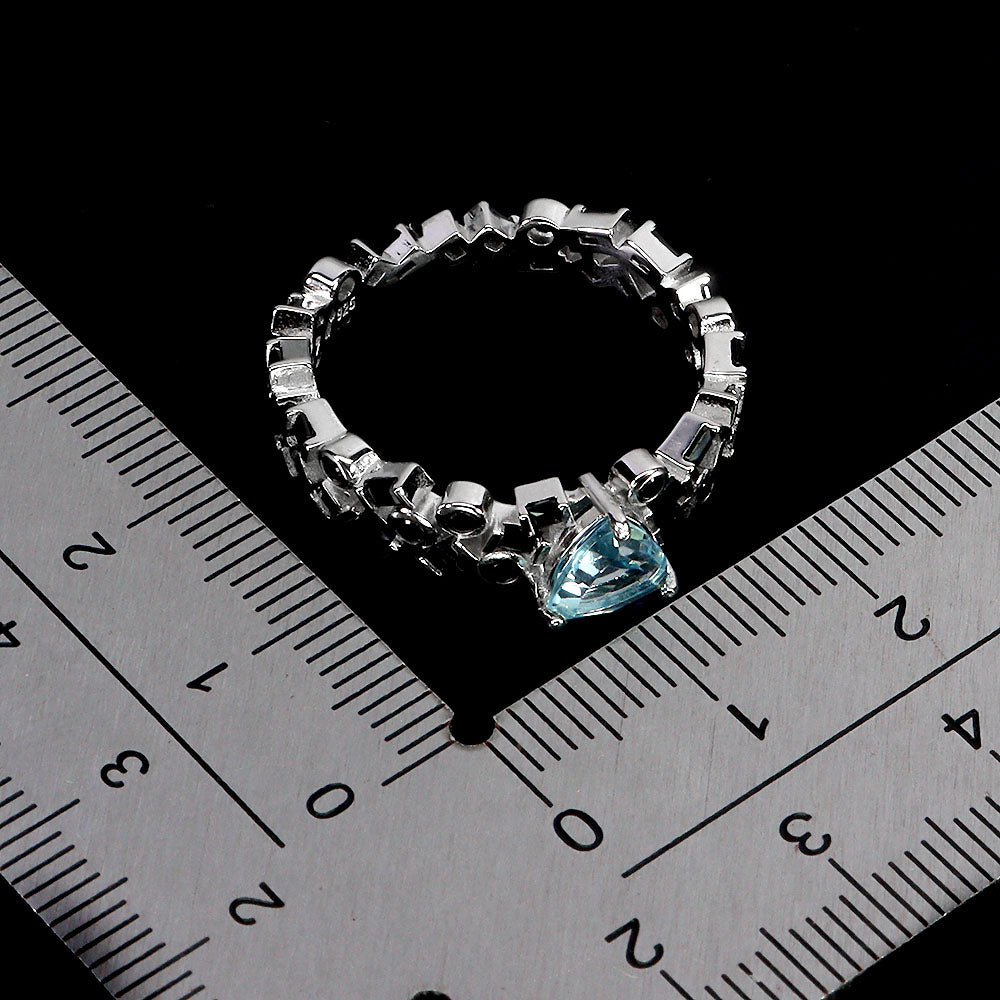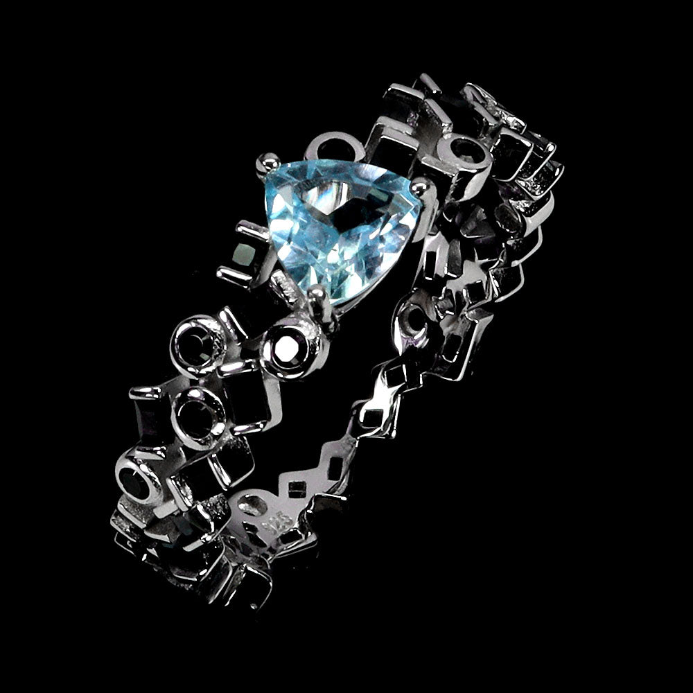 925 Sterling Silver Ring Trilliant Blue Topaz 6mm Spinel Gemstone Jewelry Sz 8.5