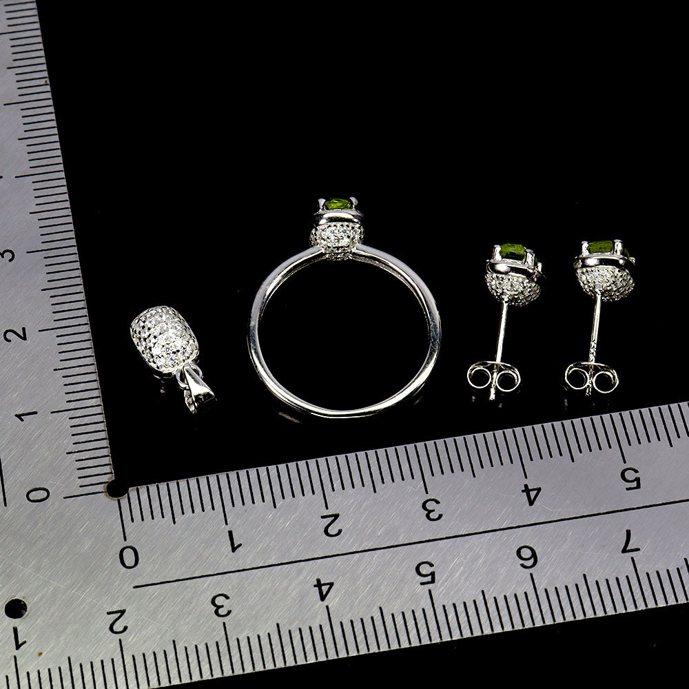 925 Sterling Silver Sets Pendant Earrings Ring Antique Peridot 6x4mm Gemstone 7