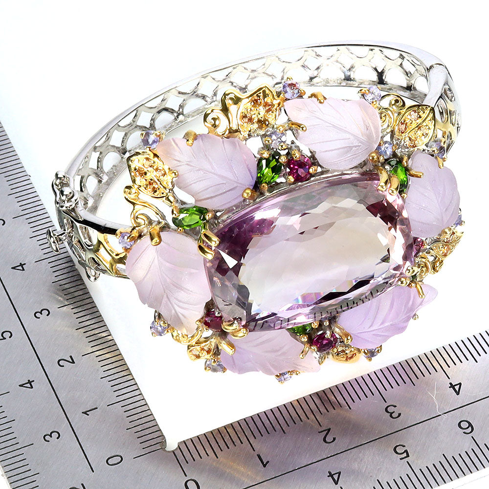 925 Sterling Silver Bangle Antique Ametrine 68ct Tanzanite Handmade Jewelry
