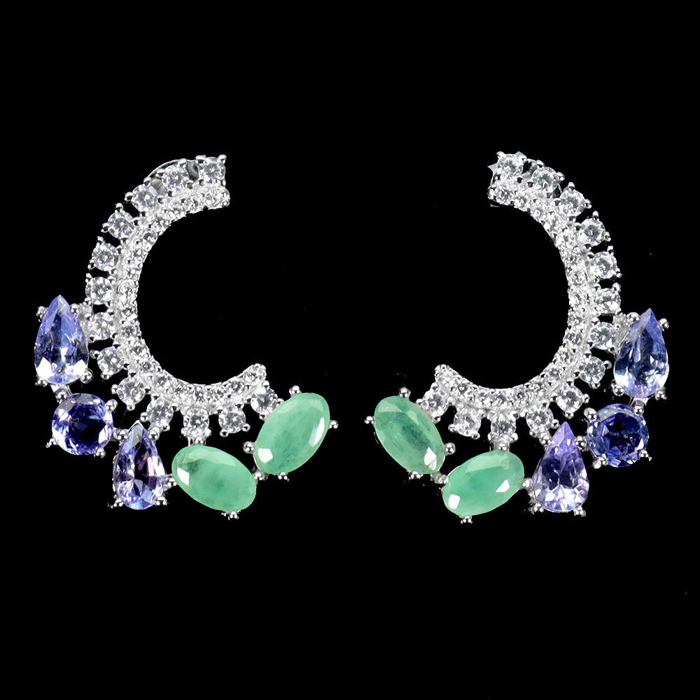 925 Sterling Silver Earrings Oval Emerald 5x3mm Tanzanite Gemstone Jewelry