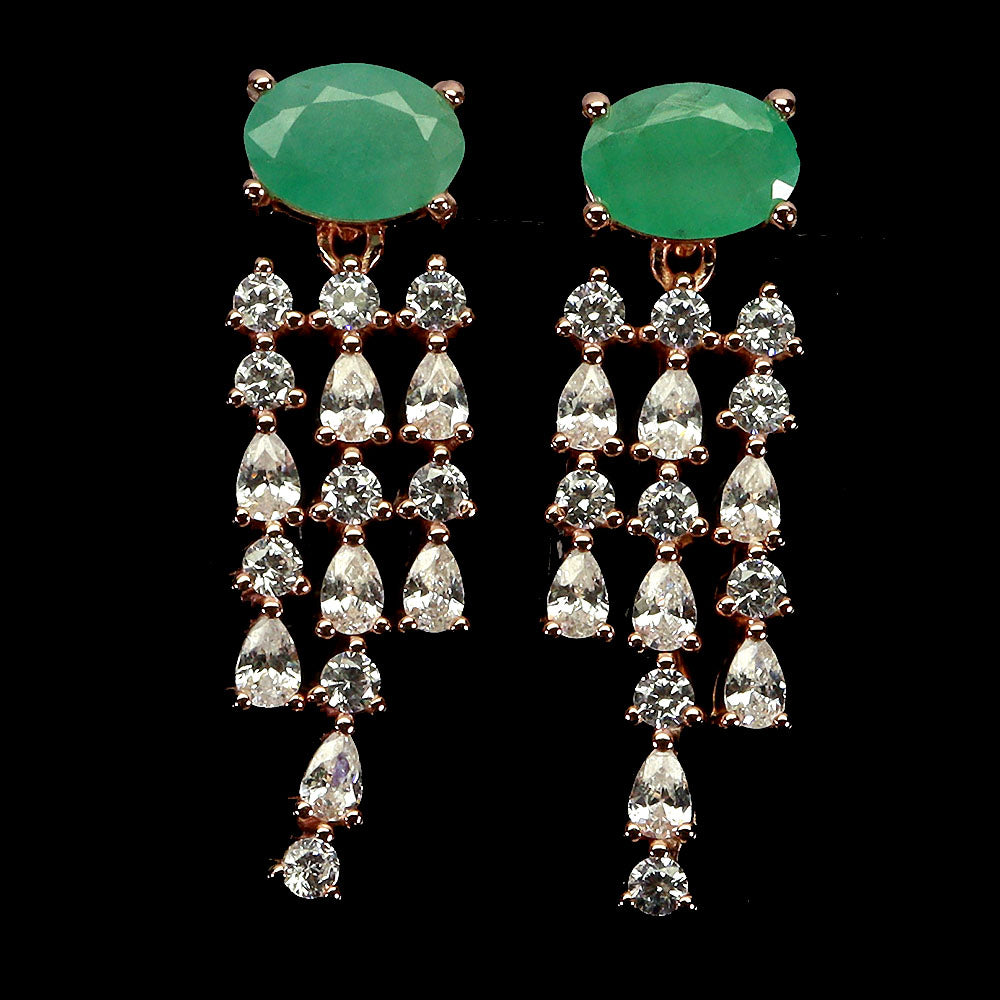 925 Sterling Silver Earrings Oval Emerald 7x5mm Natural Gemstone Jewelry