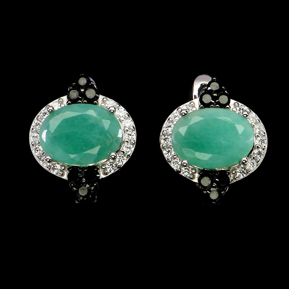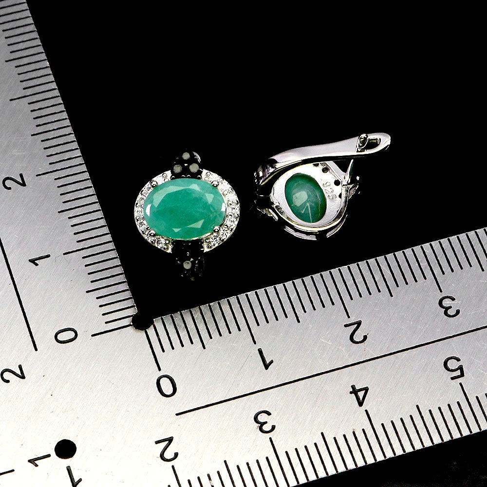 925 Sterling Silver Earrings Oval Emerald 8x6mm Spinel Natural Gemstone Jewelry