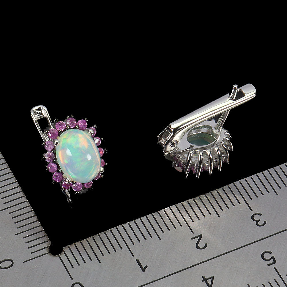 925 Sterling Silver Earrings Oval Fire Opal 8x6mm Sapphire Gemstone Jewelry
