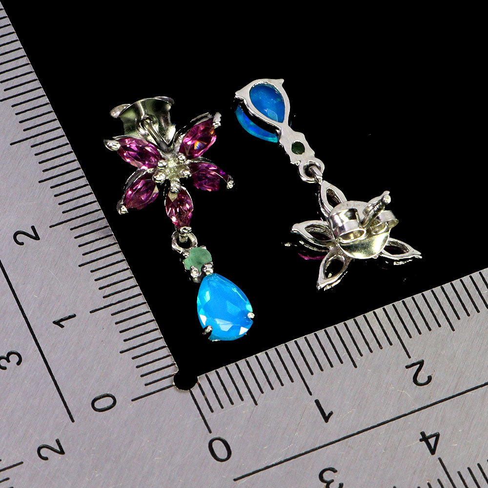 925 Sterling Silver Earrings Pear Blue Opal Emerald Rhodolite Gemstone Jewelry