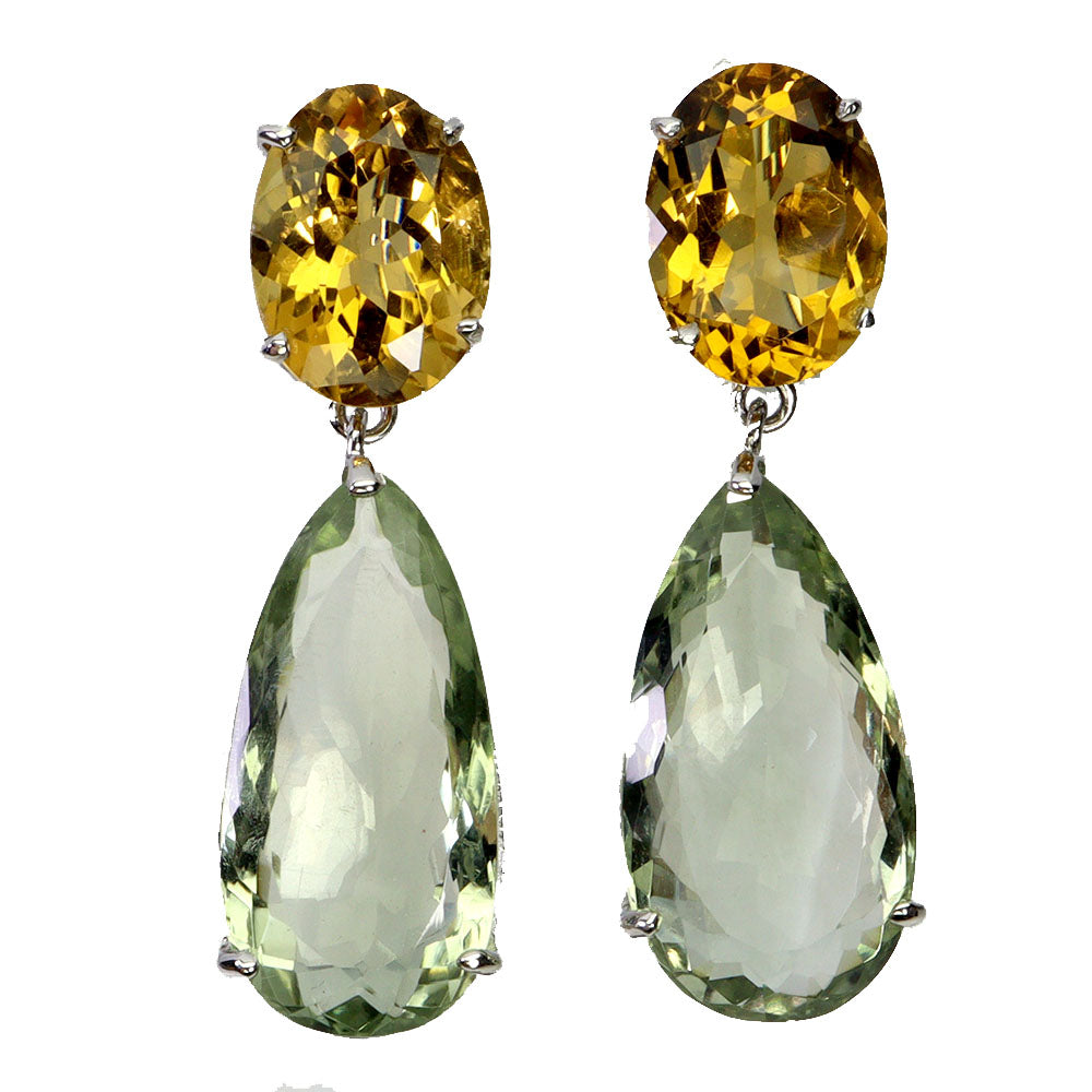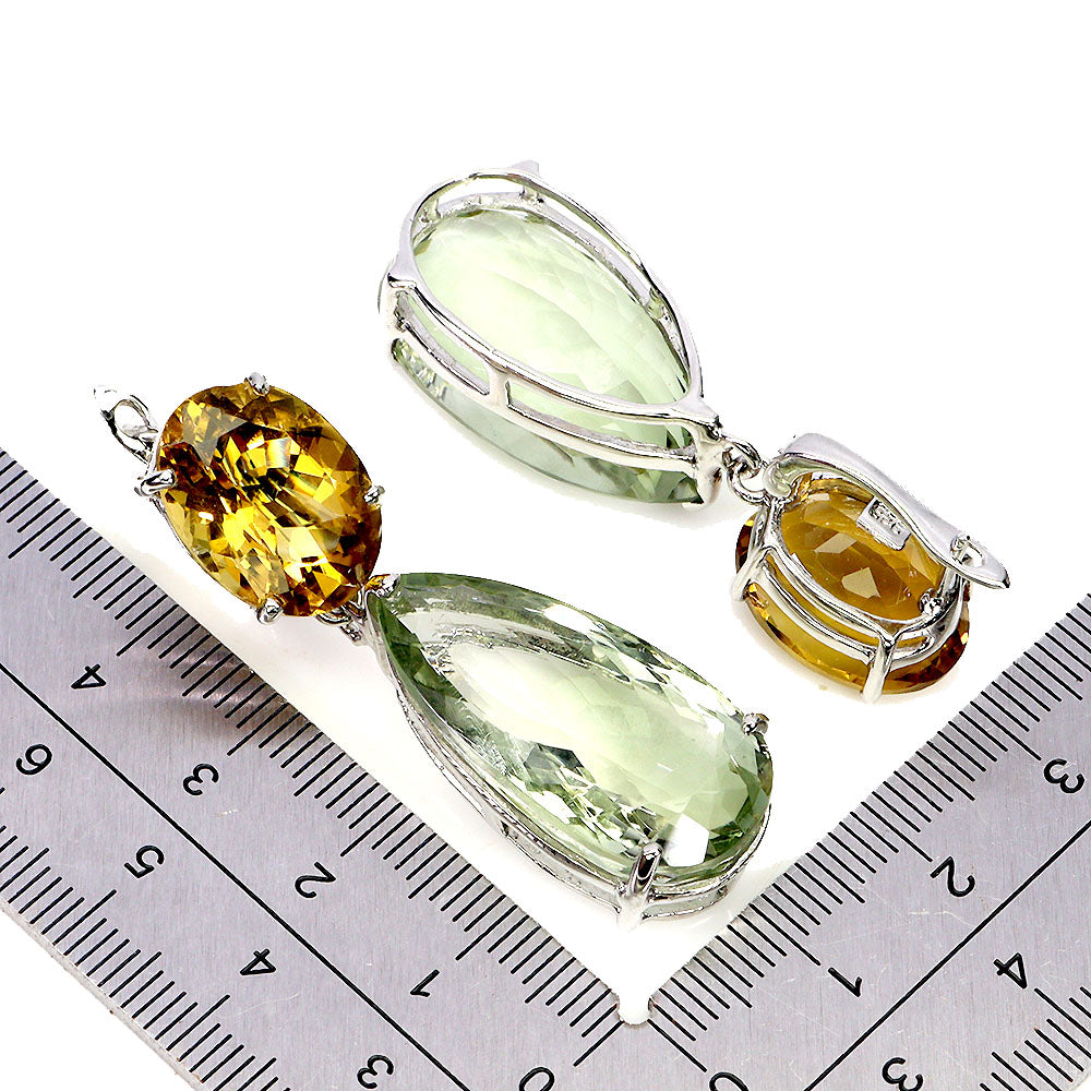 925 Sterling Silver Earrings Pear Green Amethyst 68ct Citrine Handmade Gemstone