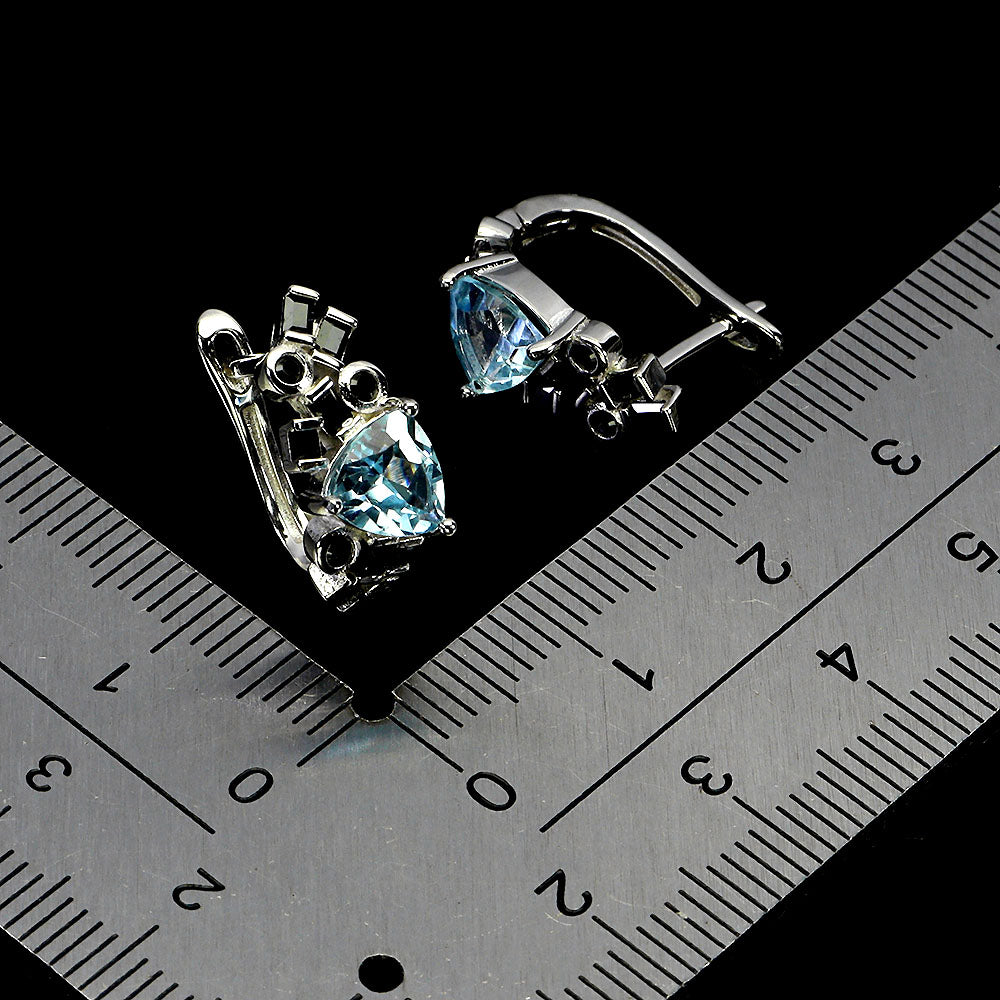 925 Sterling Silver Earrings Trilliant Blue Topaz 6mm Spinel Gemstone Jewelry