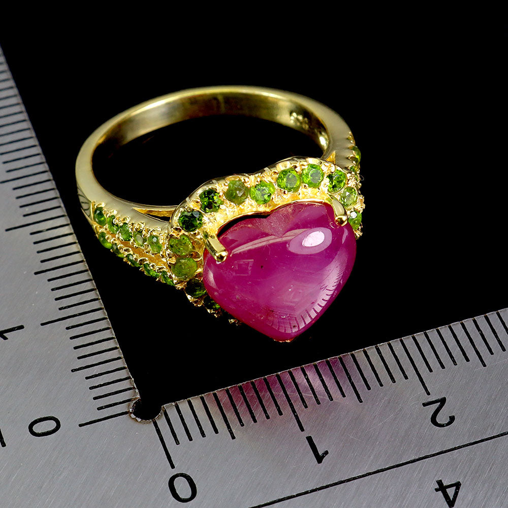 925 Sterling Silver Ring Heart Ruby 12x11mm Chrome Diopside Gemstone Jewelry 9