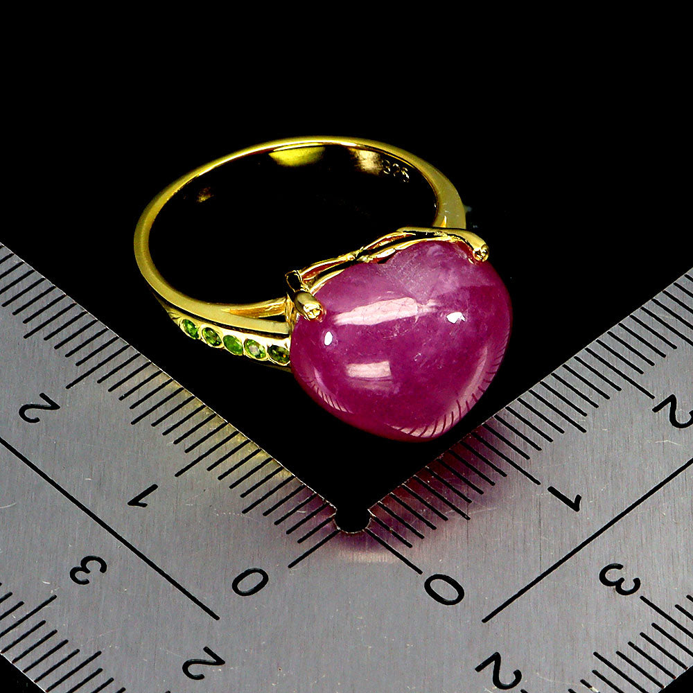 925 Sterling Silver Ring Heart Ruby 14x11mm Chrome Diopside Gemstone Jewelry 6.5