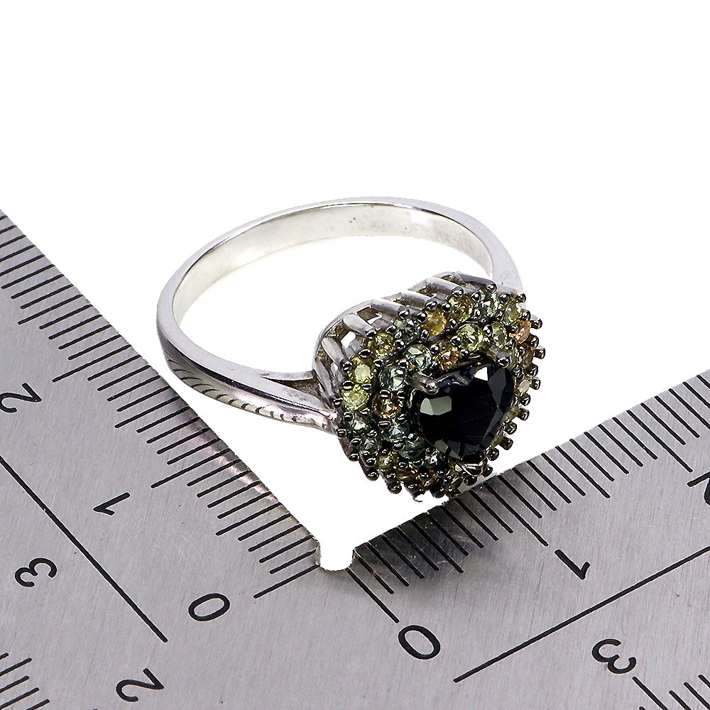 925 Sterling Silver Ring Heart Sapphire 6mm Sapphire Diamond Cut Gemstone Size 8