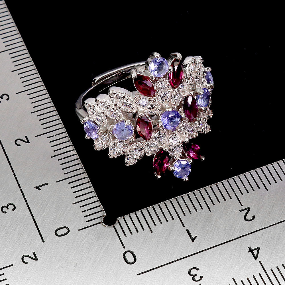 925 Sterling Silver Ring Marquise Rhodolite Garnet Tanzanite Gemstone Jewelry 9