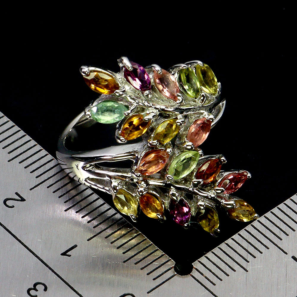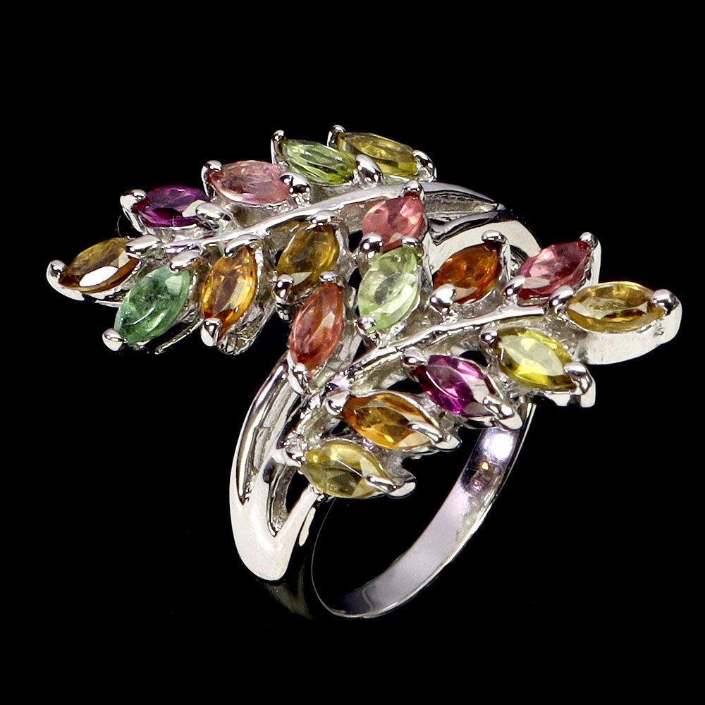 925 Sterling Silver Ring Marquise Tourmaline Natural Gemstone Jewelry Size 7
