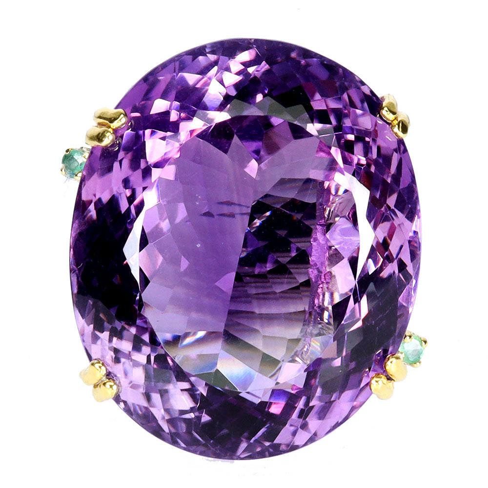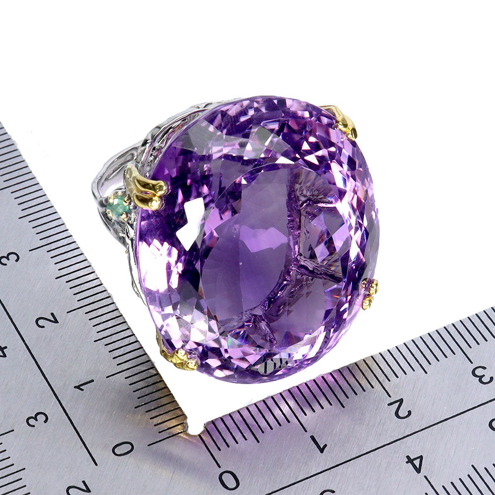 925 Sterling Silver Ring Oval Amethyst 101ct Emerald Handmade Gemstone Size 8