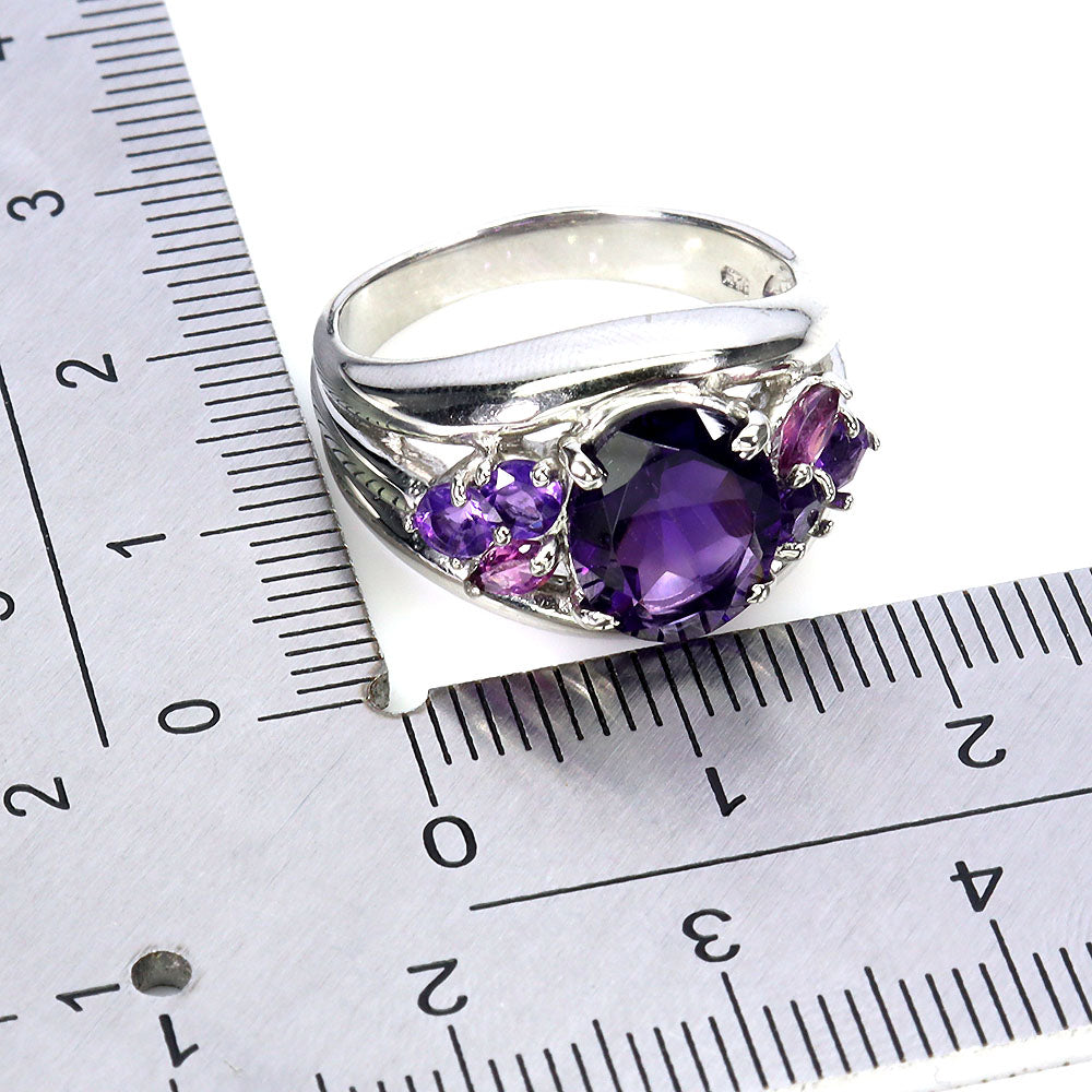 925 Sterling Silver Ring Oval Amethyst 10x8mm Rhodolite Gemstone Jewelry Size 7