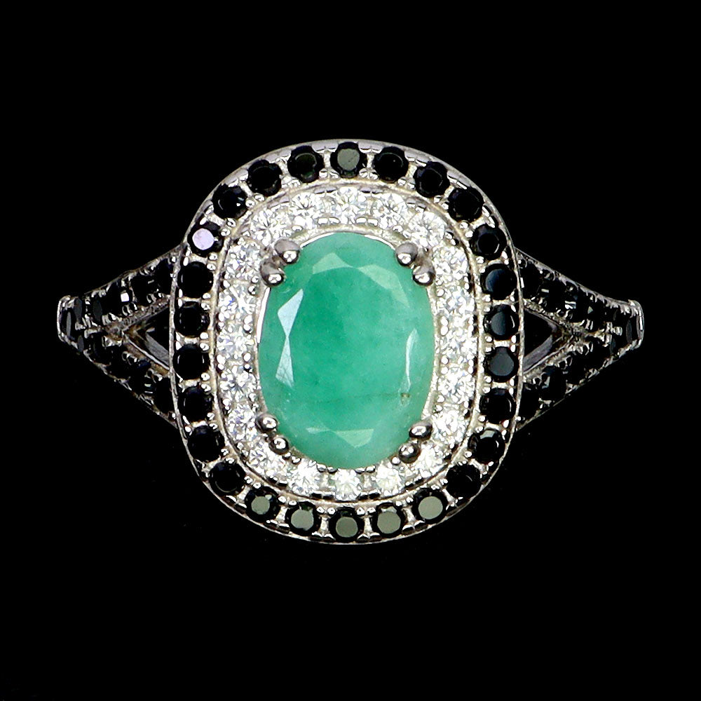 925 Sterling Silver Ring Oval Emerald 7x5mm Spinel Natural Gemstone Jewelry 7